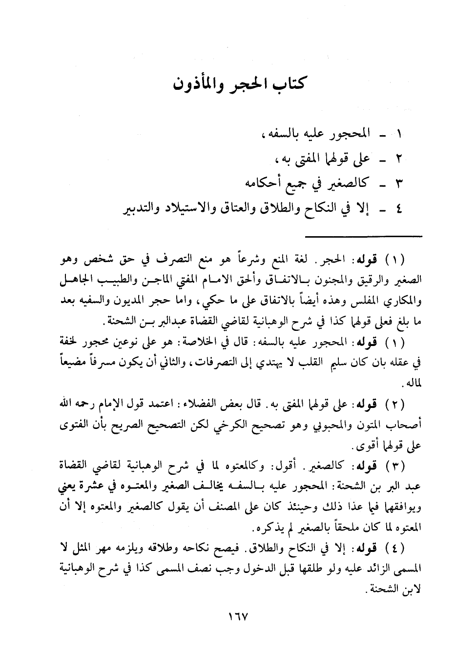 كِتَابُ الْحَجْرِ وَالْمَأْذُونِ 1 - الْمَحْجُورُ عَلَيْهِ بِالسَّفَهِ، 2 - عَلَى قَوْلِهِمَا الْمُفْتَى بِهِ، 3 - كَالصَّغِيرِ فِي جَمِيعِ أَحْكَامِهِ 4 - إلَّا فِي النِّكَاحِ وَالطَّلَاقِ وَالْعَتَاقِ وَالِاسْتِيلَادِ وَالتَّدْبِيرِ