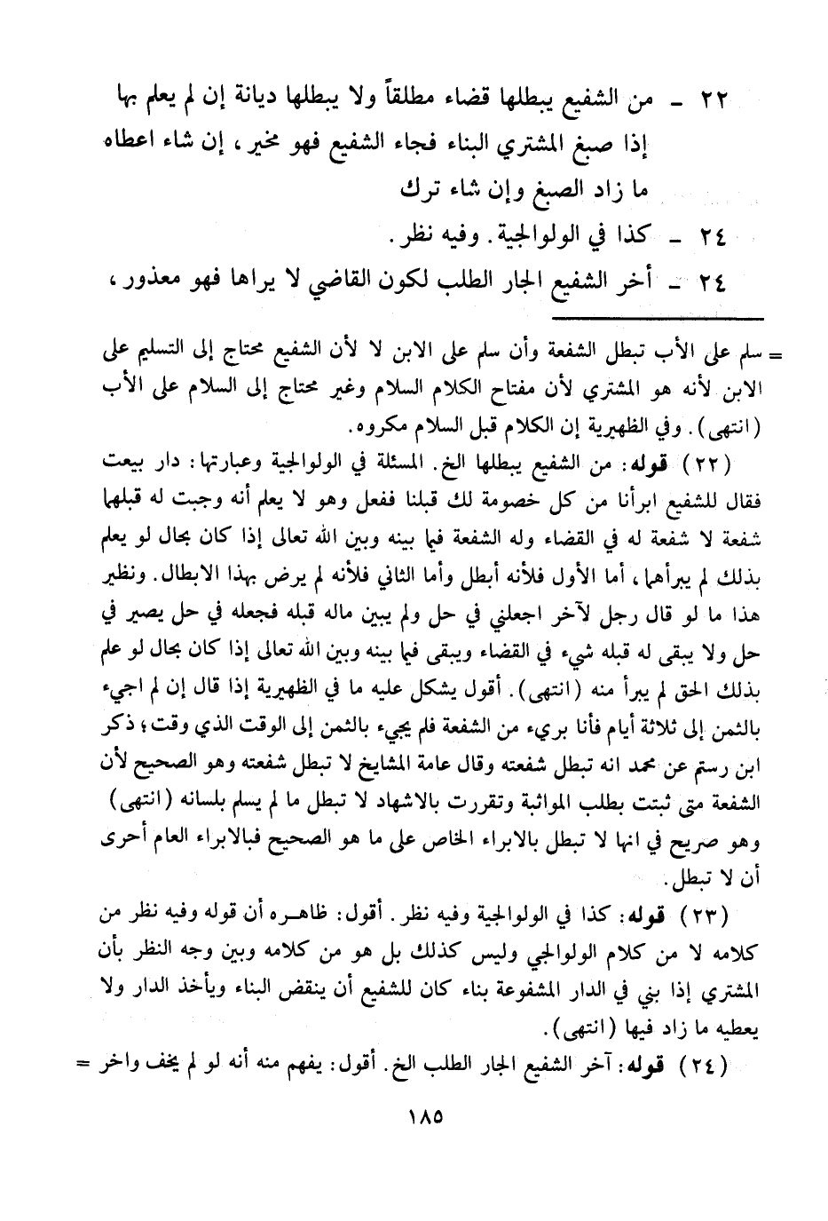 أَقُولُ: ظَاهِرُهُ أَنَّ قَوْلَهُ وَفِيهِ نَظَرٌ مِنْ كَلَامِهِ لَا مِنْ كَلَامِ الْوَلْوَالِجِيِّ وَلَيْسَ كَذَلِكَ بَلْ هُوَ مِنْ كَلَامِهِ وَبَيْنَ وَجْهِ النَّظَرِ بِأَنَّ الْمُشْتَرِيَ إذَا بَنَى فِي الدَّارِ الْمَشْفُوعَةِ بِنَاءً كَانَ لِلشَّفِيعِ أَنْ يَنْقُضَ الْبِنَاءَ وَيَأْخُذَ الدَّارَ، وَلَا يُعْطِيَهُ مَا زَادَ فِيهَا (انْتَهَى)