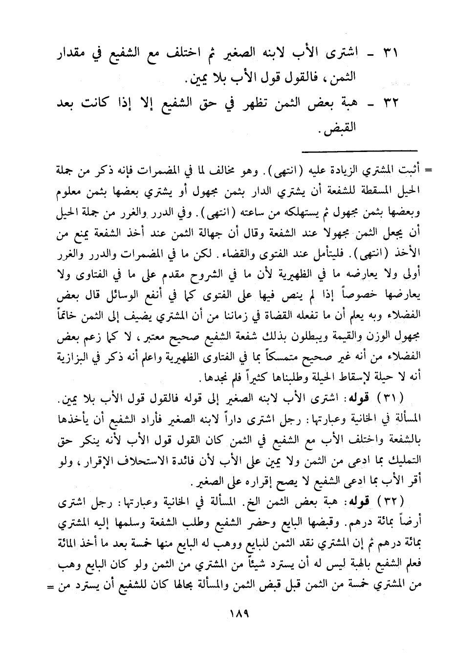 32 - هِبَةُ بَعْضِ الثَّمَنِ تَظْهَرُ فِي حَقِّ الشَّفِيعِ إلَّا إذَا كَانَتْ بَعْدَ الْقَبْضِ