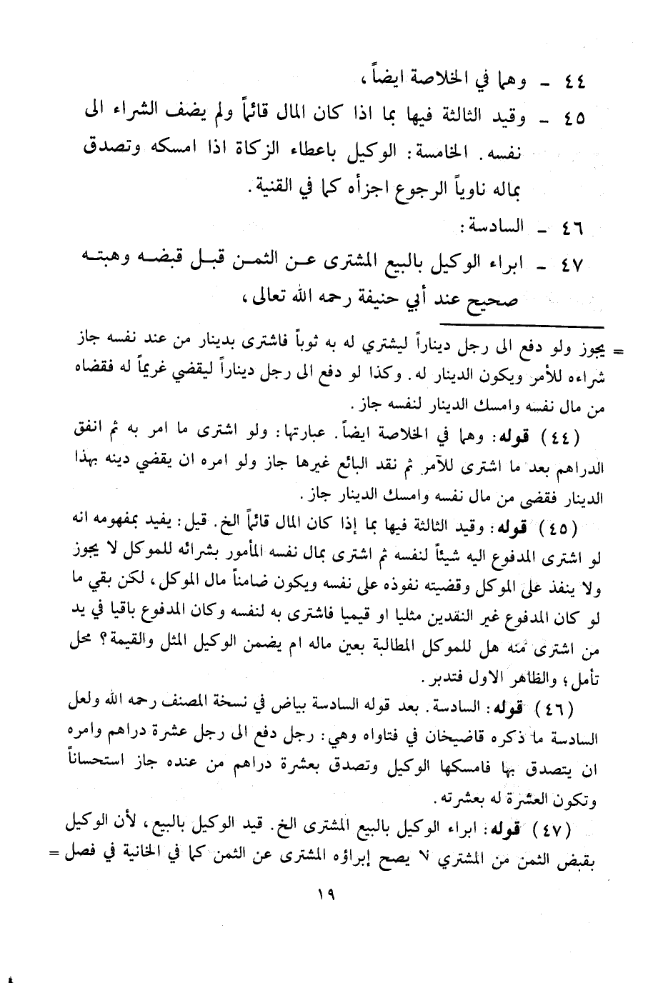 وَهُمَا فِي الْخُلَاصَةِ أَيْضًا، 45 - وَقَيَّدَ الثَّالِثَةَ فِيهَا بِمَا إذَا كَانَ الْمَالُ قَائِمًا وَلَمْ يُضِفْ الشِّرَاءَ إلَى نَفْسِهِ.