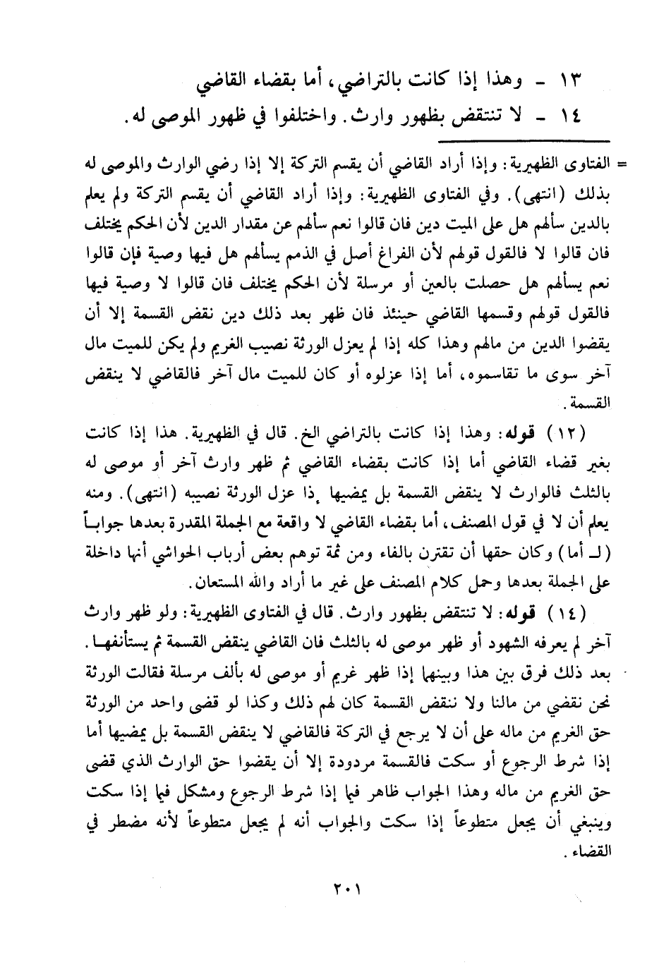 ـــــــــــــــــــــــــــــQالْفَتَاوَى الظَّهِيرِيَّةِ: وَإِذَا أَرَادَ الْقَاضِي أَنْ يُقَسِّمَ التَّرِكَةَ إلَّا إذَا رَضِيَ الْوَارِثُ وَالْمُوصَى لَهُ بِذَلِكَ (انْتَهَى) .