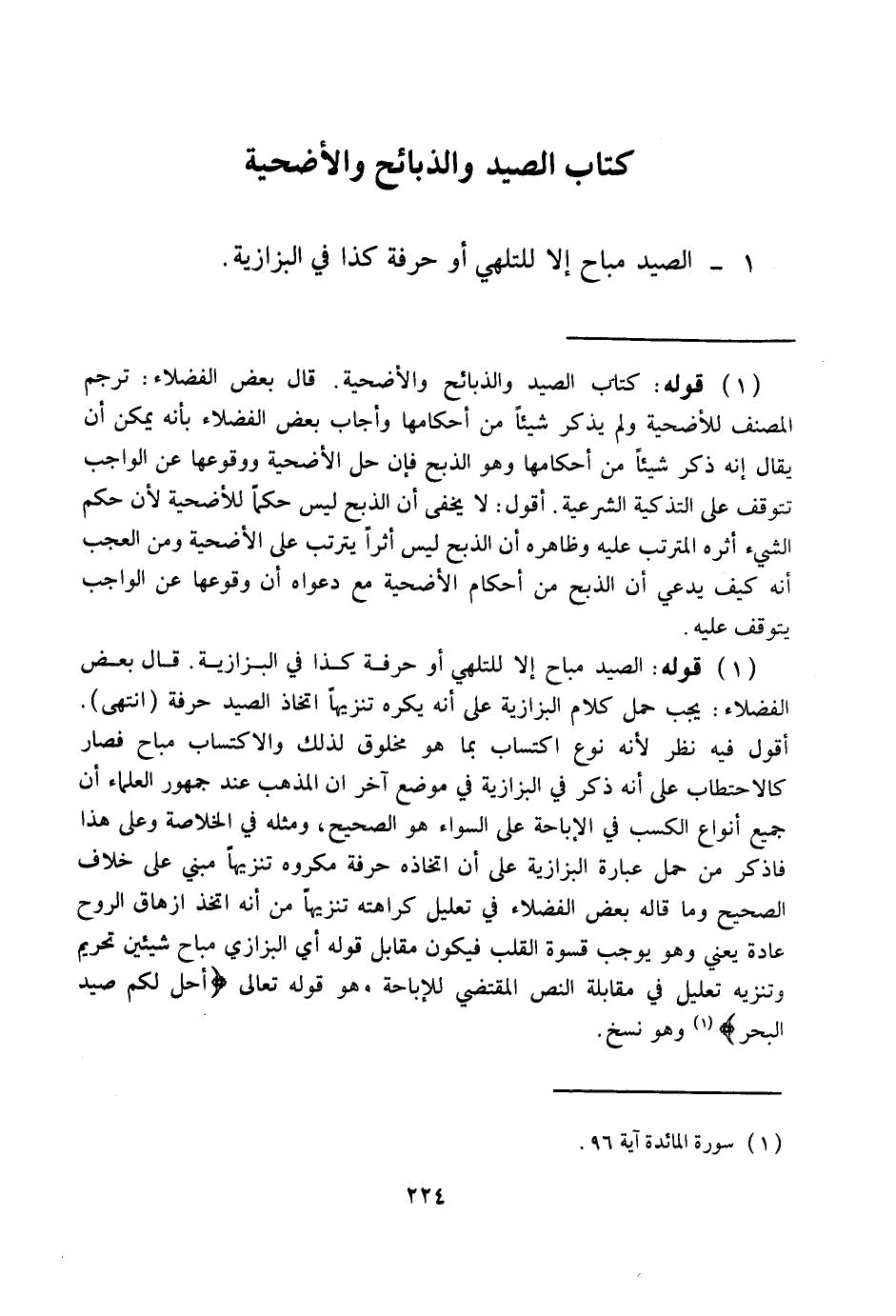 كِتَابُ الصَّيْدِ وَالذَّبَائِحِ وَالْأُضْحِيَّةِ 1 - الصَّيْدُ مُبَاحٌ إلَّا لِلتَّلَهِّي أَوْ حِرْفَةٍ كَذَا فِي الْبَزَّازِيَّةِ.
