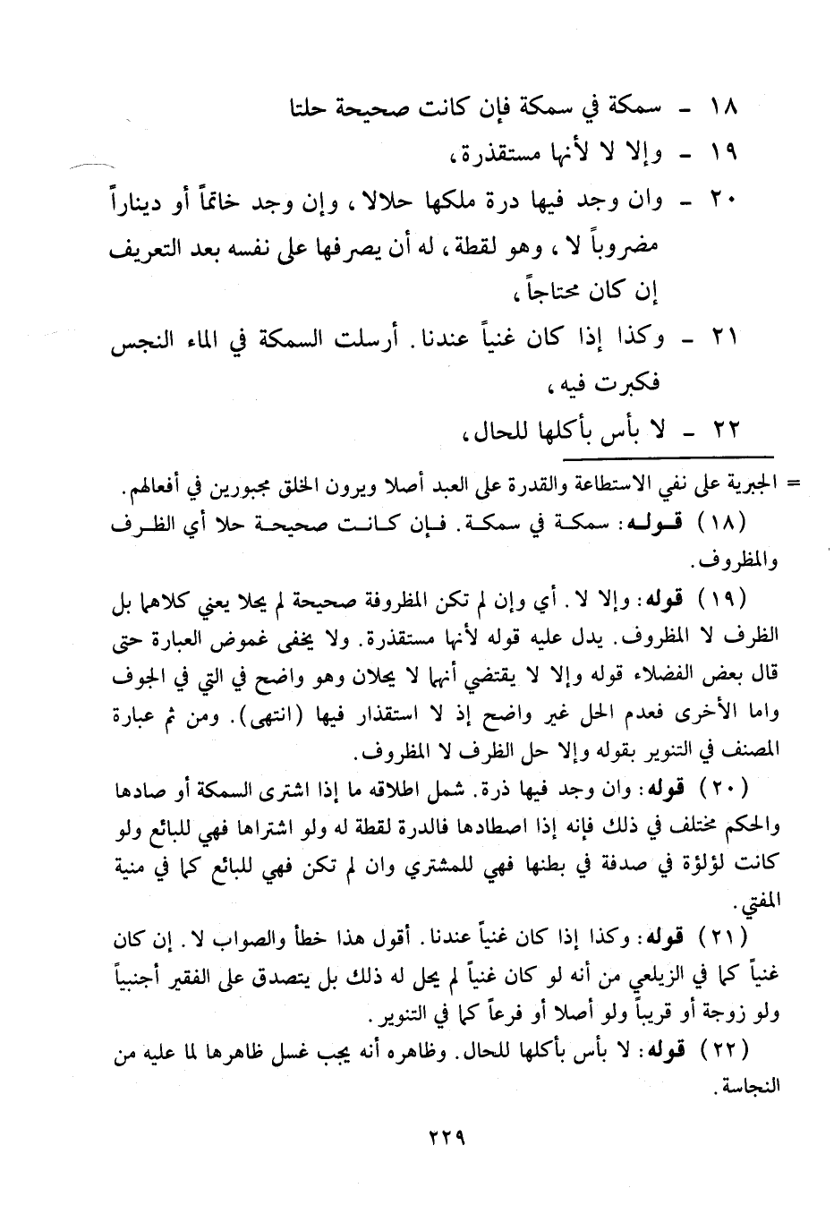 أُرْسِلَتْ السَّمَكَةُ فِي الْمَاءِ النَّجَسِ فَكَبِرَتْ فِيهِ، 22 - لَا بَأْسَ بِأَكْلِهَا لِلْحَالِّ،