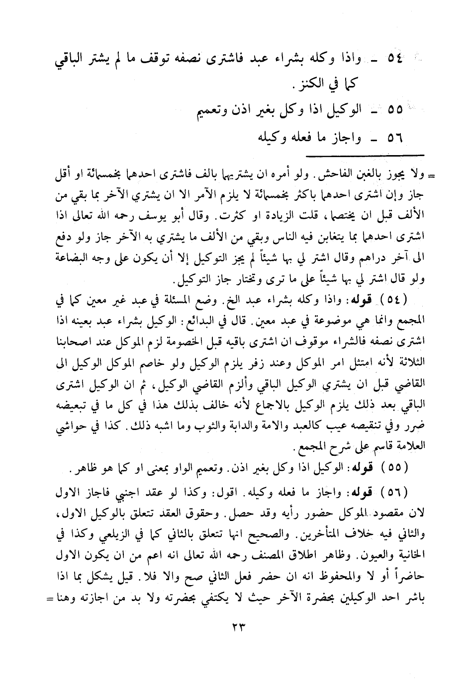 55 - الْوَكِيلُ إذَا وَكَّلَ بِغَيْرِ إذْنٍ وَتَعْمِيمٍ 56 - وَأَجَازَ مَا فَعَلَهُ وَكِيلُهُ