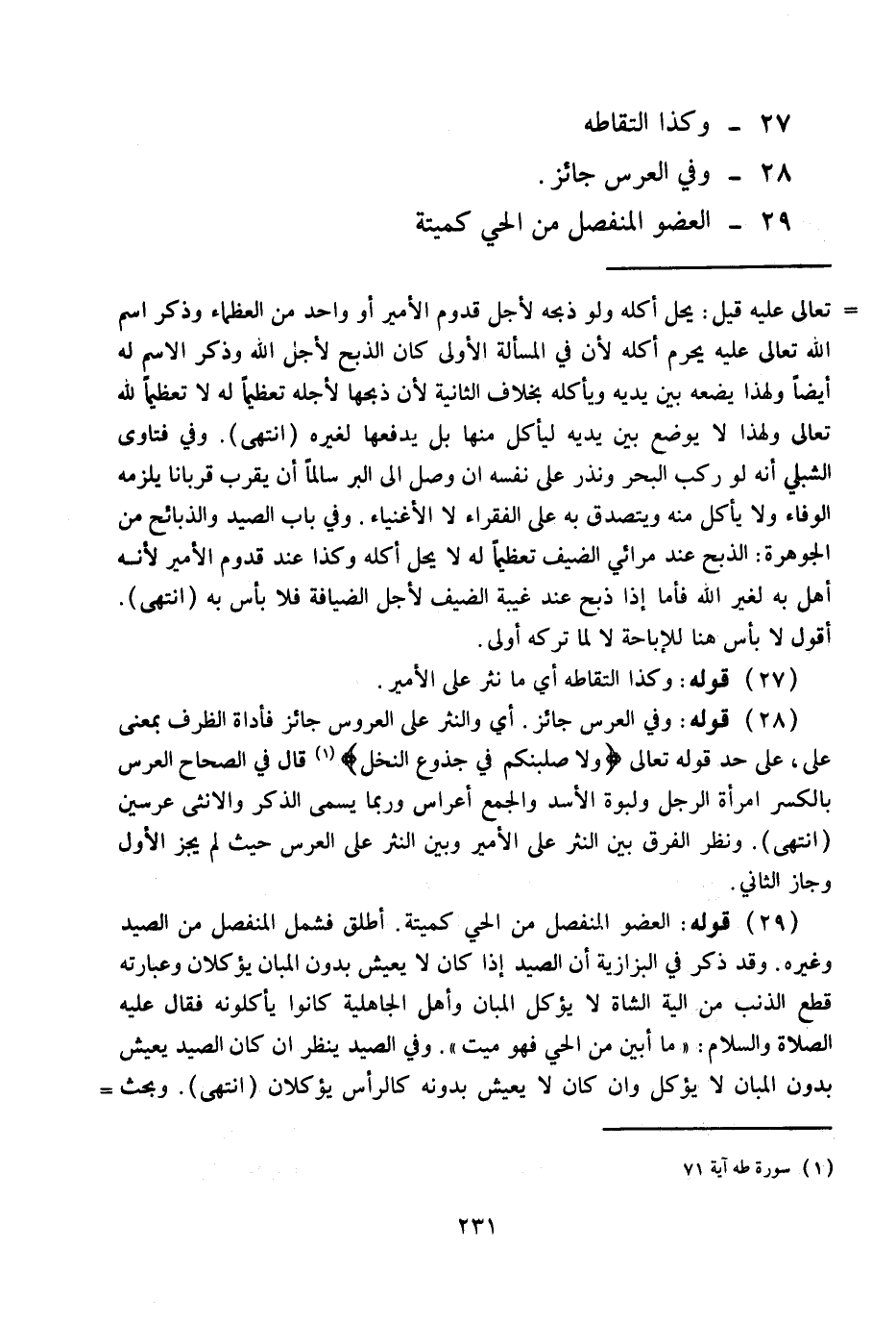 (29) قَوْلُهُ: الْعُضْوُ الْمُنْفَصِلُ مِنْ الْحَيِّ كَمَيْتَتِهِ.