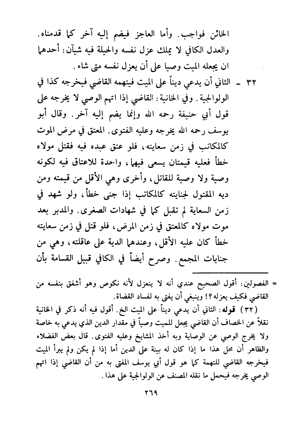 أَقُولُ فِيهِ أَنَّهُ ذُكِرَ فِي الْخَانِيَّةِ نَقْلًا عَنْ الْخَصَّافِ أَنَّ الْقَاضِيَ يَجْعَلُ لِلْمَيِّتِ وَصِيًّا فِي مِقْدَارِ الدَّيْنِ الَّذِي يَدَّعِي بِهِ خَاصَّةً وَلَا يَخْرُجُ الْوَصِيُّ عَنْ الْوِصَايَةِ وَبِهِ أَخَذَ الْمَشَايِخُ وَعَلَيْهِ الْفَتْوَى.