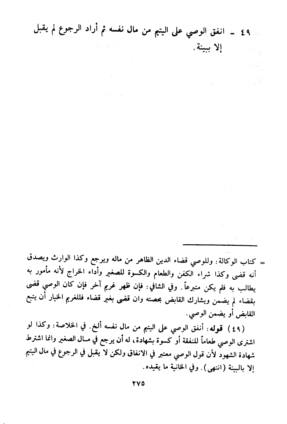 (49) قَوْلُهُ: أَنْفَقَ الْوَصِيُّ عَلَى الْيَتِيمِ مِنْ مَالِ نَفْسِهِ إلَخْ.