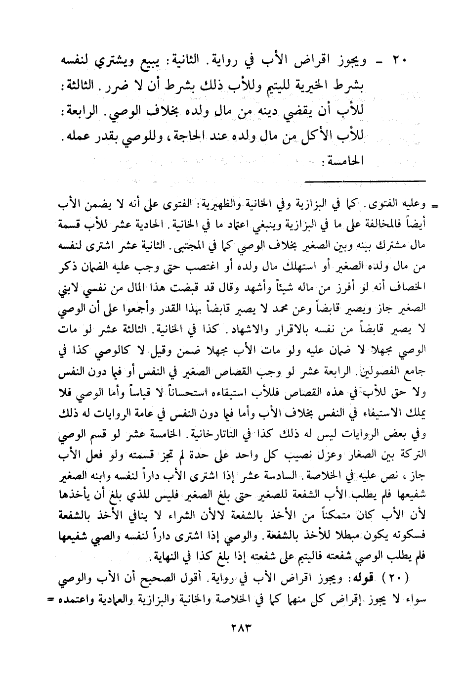 أَقُولُ: الصَّحِيحُ أَنَّ الْأَبَ وَالْوَصِيَّ سَوَاءٌ لَا يَجُوزُ إقْرَاضُ كُلِّ مِنْهُمَا كَمَا فِي الْخُلَاصَةِ وَالْخَانِيَّةِ وَالْبَزَّازِيَّةِ وَالْعِمَادِيَّةِ وَاعْتَمَدَهُ