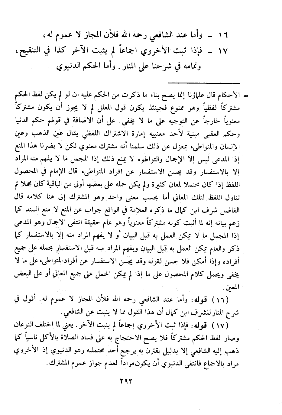 وَأَمَّا عِنْدَ الشَّافِعِيِّ - رَحِمَهُ اللَّهُ - فَلِأَنَّ الْمَجَازَ لَا عُمُومَ لَهُ، 17 - فَإِذَا ثَبَتَ الْأُخْرَوِيُّ إجْمَاعًا لَمْ يَثْبُتْ الْآخَرُ كَذَا فِي التَّنْقِيحِ، وَتَمَامُهُ فِي شَرْحِنَا عَلَى الْمَنَارِ.