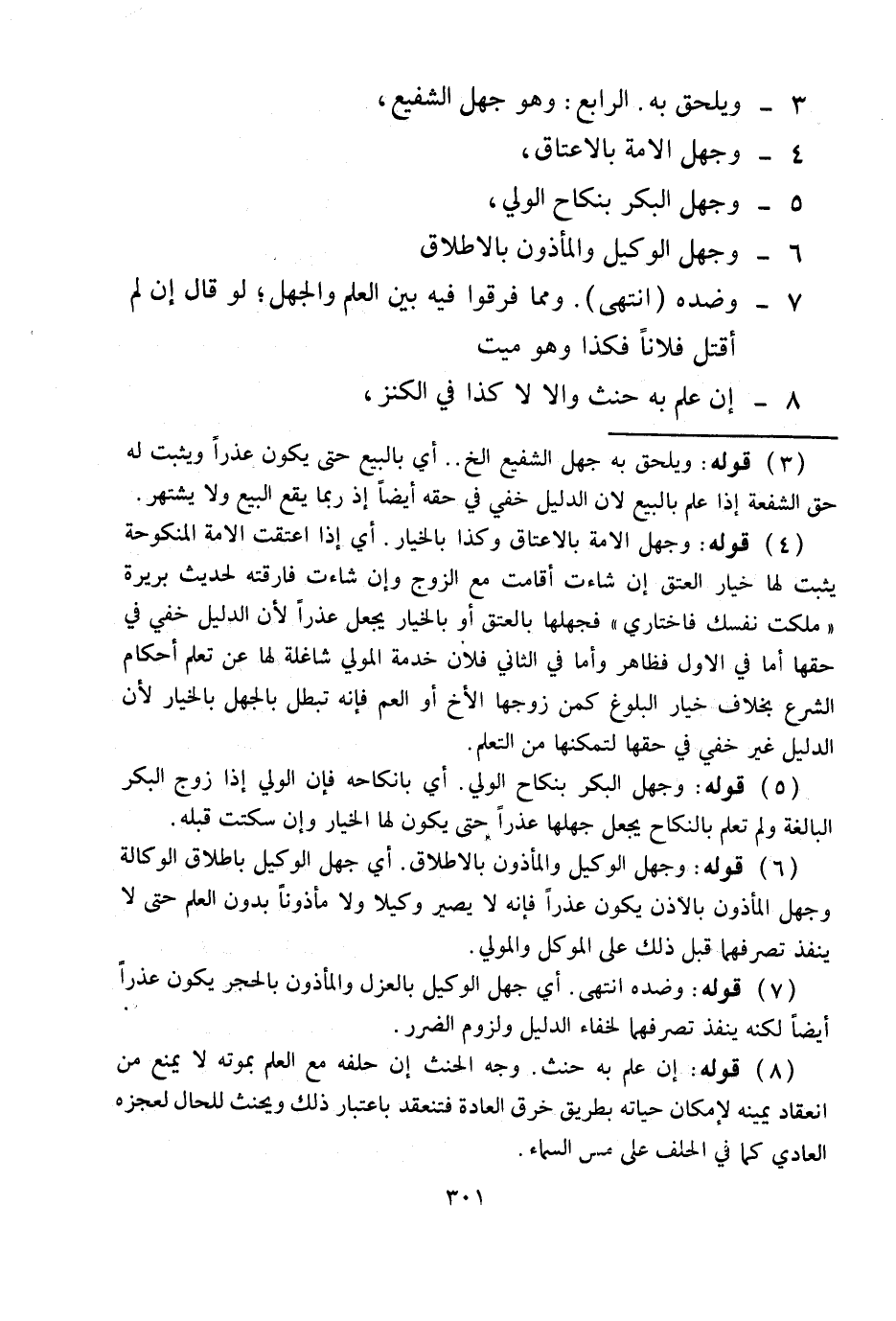 الرَّابِعُ: وَهُوَ جَهْلُ الشَّفِيعِ، 4 - وَجَهْلُ الْأَمَةِ بِالْإِعْتَاقِ، 5 - وَجَهْلُ الْبِكْرِ بِنِكَاحِ الْوَلِيِّ، 6 - وَجَهْلُ الْوَكِيلِ وَالْمَأْذُونِ بِالْإِطْلَاقِ 7 - وَضِدُّهُ (انْتَهَى)