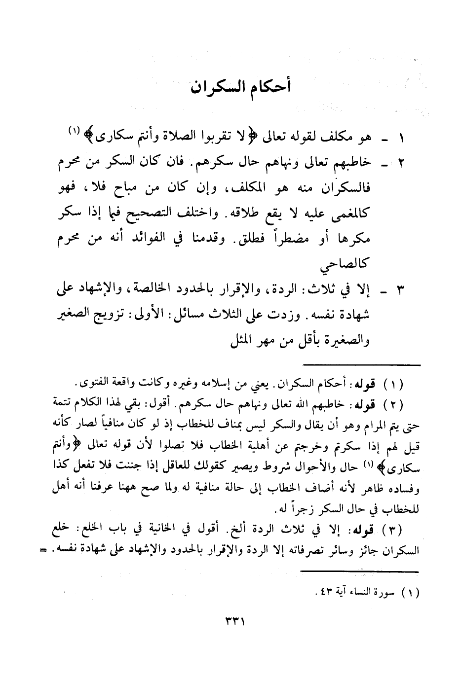 أَحْكَامُ السَّكْرَانِ 1 - هُوَ مُكَلَّفٌ لِقَوْلِهِ تَعَالَى: {لا تَقْرَبُوا الصَّلاةَ وَأَنْتُمْ سُكَارَى} [النساء: 43]