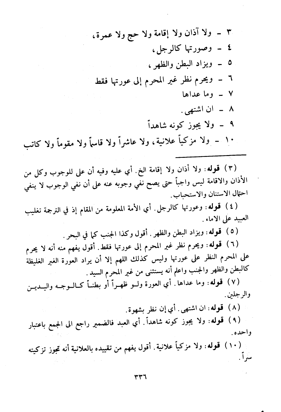 3 - وَلَا أَذَانَ وَلَا إقَامَةَ وَلَا حَجَّ وَلَا عُمْرَةَ،