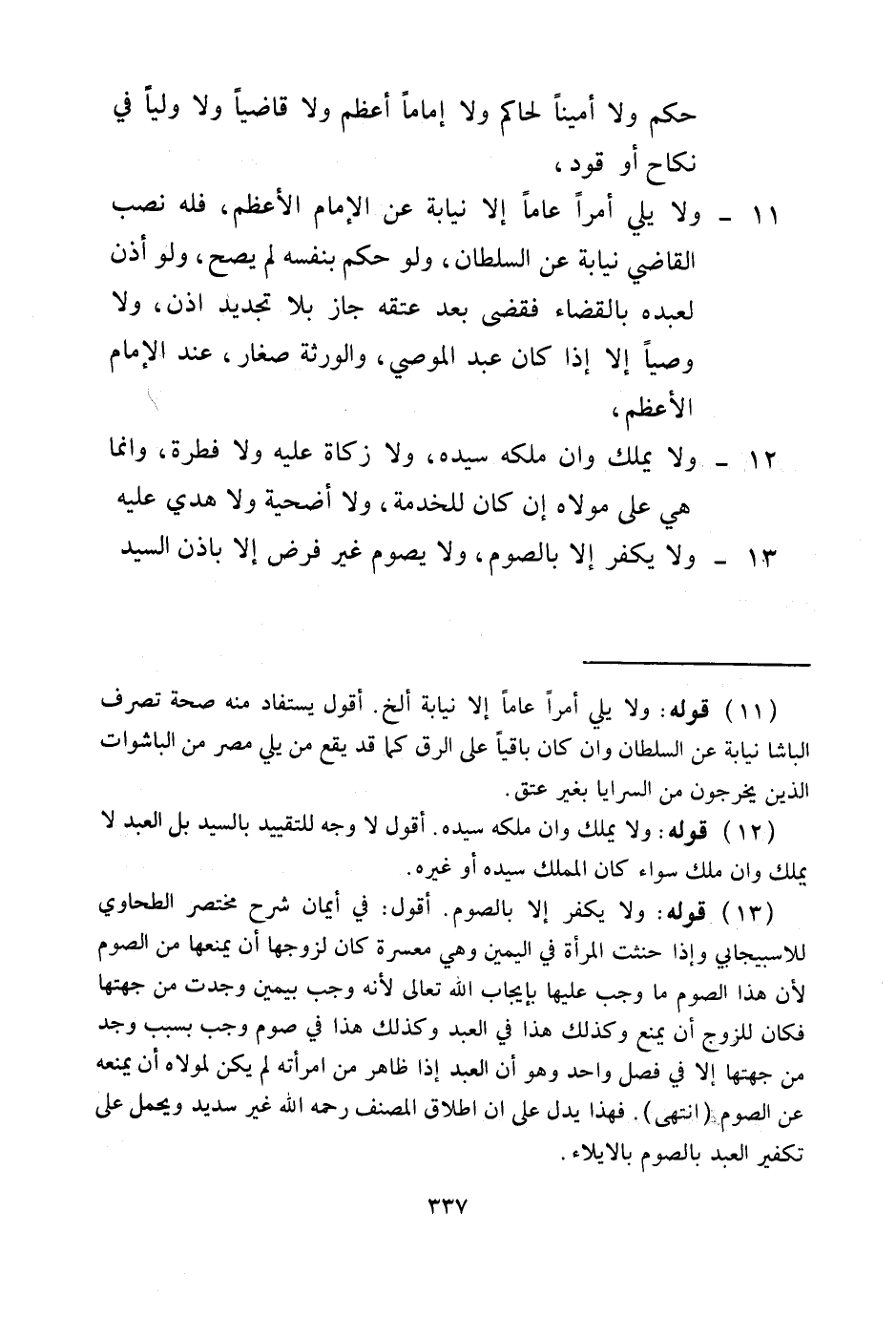 ـــــــــــــــــــــــــــــQقَوْلُهُ: وَلَا يَلِي أَمْرًا عَامًّا إلَّا نِيَابَةً إلَخْ. أَقُولُ يُسْتَفَادُ مِنْهُ صِحَّةُ تَصَرُّفِ الْبَاشَا نِيَابَةً عَنْ السُّلْطَانِ وَإِنْ كَانَ بَاقِيًا عَلَى الرِّقِّ كَمَا قَدْ يَقَعُ مَنْ يَلِي مِصْرَ مِنْ الْبَاشَوَاتِ الَّذِينَ يَخْرُجُونَ مِنْ السَّرَايَا بِغَيْرِ عِتْقٍ