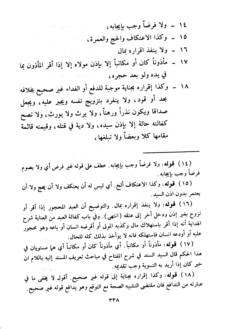 (17) قَوْلُهُ: مَأْذُونًا أَوْ مُكَاتَبًا. أَيْ مَأْذُونًا كَانَ أَوْ مُكَاتَبًا أَيْ هُمَا مُسْتَوِيَانِ فِي هَذَا الْحُكْمِ قَالَ السَّيِّدُ السَّنَدُ فِي شَرْحِ الْمِفْتَاحِ فِي مَبَاحِثِ تَعْرِيفِ الْمُسْنَدِ إلَيْهِ بِاللَّامِ: إنَّ خَبَرَ كَانَ إذَا أُرِيدَ بِهِ التَّسْوِيَةَ وَجَبَ تَقْدِيمُهُ.