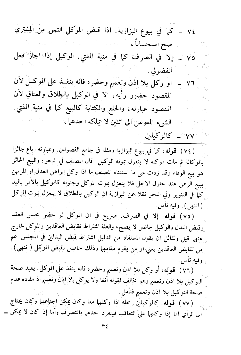 الشَّيْءُ الْمُفَوَّضُ إلَى اثْنَيْنِ لَا يَمْلِكُهُ أَحَدُهُمَا، 77 - كَالْوَكِيلَيْنِ