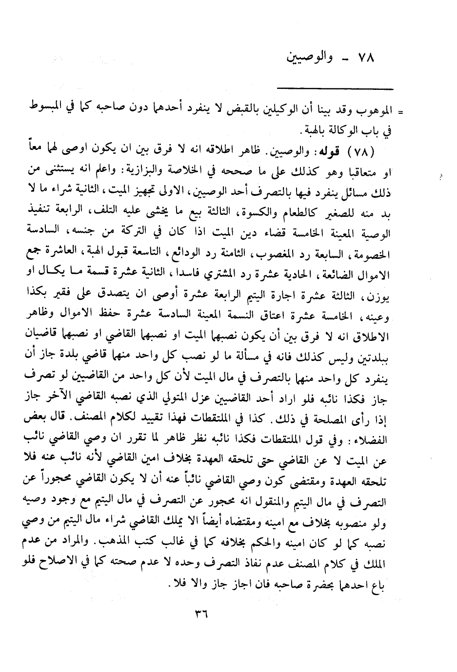 ـــــــــــــــــــــــــــــQالْمَوْهُوبِ وَقَدْ بَيَّنَّا أَنَّ الْوَكِيلَيْنِ بِالْقَبْضِ لَا يَنْفَرِدُ أَحَدُهُمَا دُونَ صَاحِبِهِ كَمَا فِي الْمَبْسُوطِ فِي بَابِ الْوَكَالَةِ بِالْهِبَةِ. (78) قَوْلُهُ: