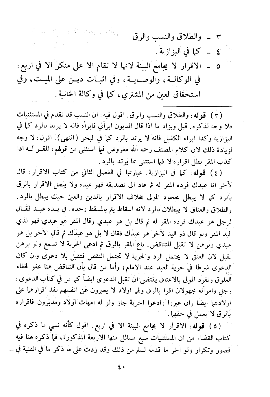 وَالطَّلَاقُ وَالنَّسَبُ وَالرِّقُّ 4 - كَمَا فِي الْبَزَّازِيَّةِ
