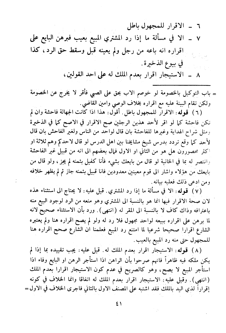 الْإِقْرَارُ لِلْمَجْهُولِ بَاطِلٌ 7 - إلَّا فِي مَسْأَلَةِ مَا إذَا رَدَّ الْمُشْتَرِي الْمَبِيعَ بِعَيْبٍ فَبَرْهَنَ الْبَائِعُ عَلَى إقْرَارِهِ أَنَّهُ بَاعَهُ مِنْ رَجُلٍ وَلَمْ يُعَيِّنْهُ قُبِلَ وَسَقَطَ حَقُّ الرَّدِّ، كَذَا فِي بُيُوعِ الذَّخِيرَةِ