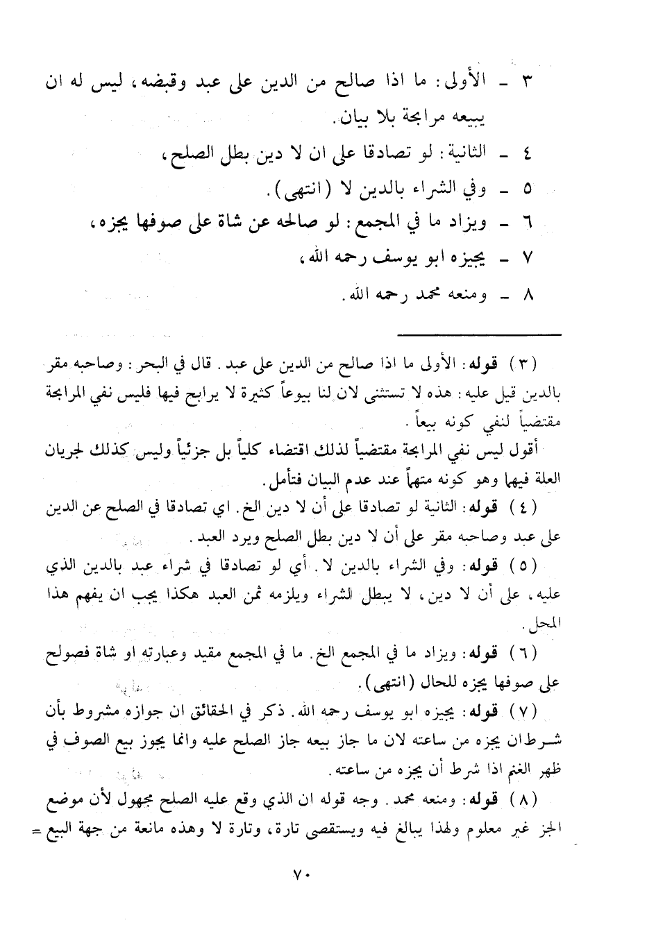 6 - وَيُزَادُ مَا فِي الْمَجْمَعِ: لَوْ صَالَحَهُ عَنْ شَاةٍ عَلَى صُوفِهَا يَجُزُّهُ، 7 - يُجِيزُهُ أَبُو يُوسُفَ - رَحِمَهُ اللَّهُ -، 8 - وَمَنَعَهُ مُحَمَّدٌ - رَحِمَهُ اللَّهُ -.