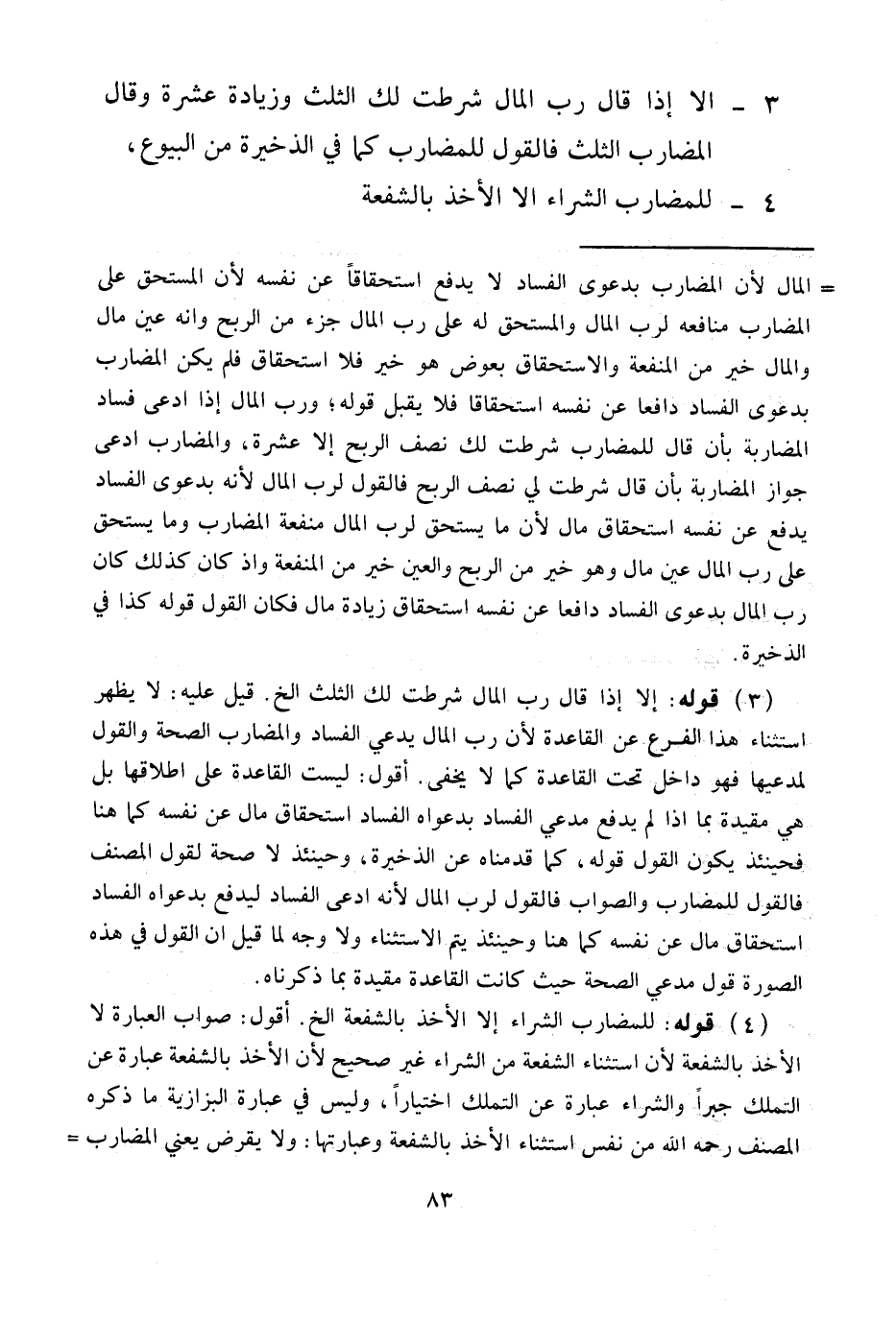4 - لِلْمُضَارِبِ الشِّرَاءُ إلَّا الْأَخْذَ بِالشُّفْعَةِ