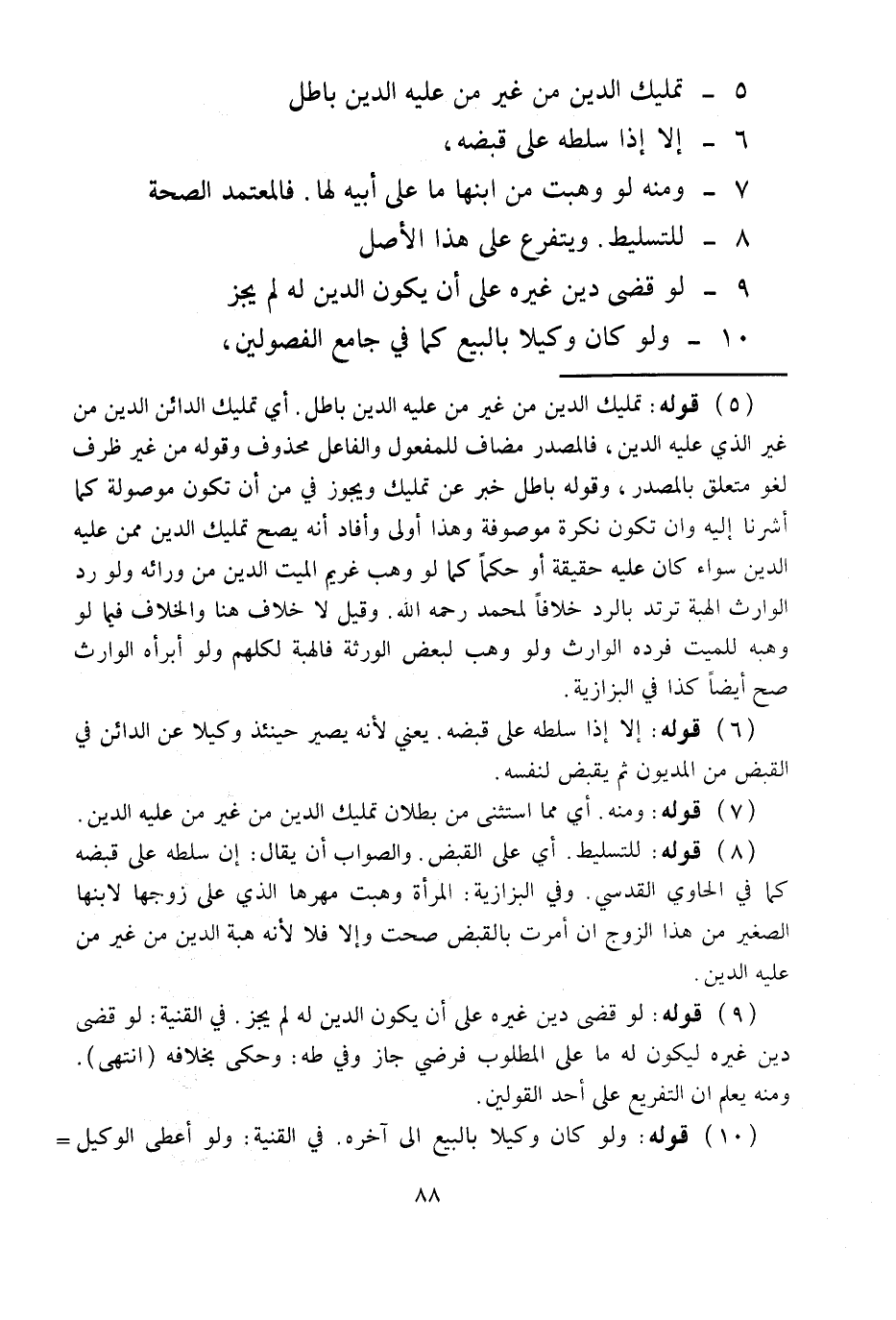 (7) قَوْلُهُ " وَمِنْهُ " أَيْ: مِمَّا اسْتَثْنَى مِنْ بُطْلَانِ تَمْلِيكِ الدَّيْنِ مِنْ غَيْرِ مَنْ عَلَيْهِ الدَّيْنُ. (8) قَوْلُهُ: لِلتَّسْلِيطِ أَيْ: عَلَى الْقَبْضِ.