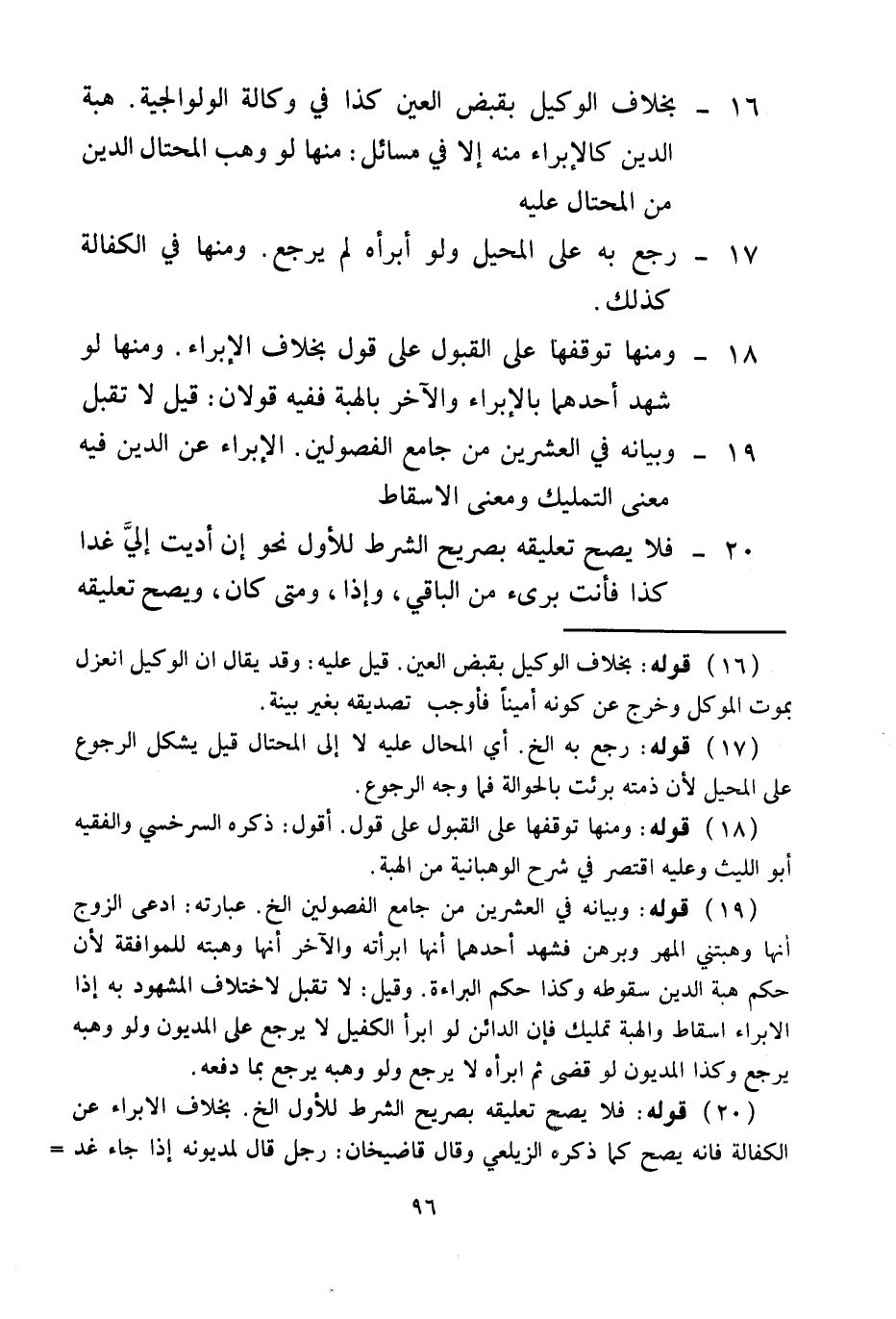 الْإِبْرَاءُ عَنْ الدَّيْنِ فِيهِ مَعْنَى التَّمْلِيكِ وَمَعْنَى الْإِسْقَاطِ 20 - فَلَا يَصِحُّ تَعْلِيقُهُ بِصَرِيحِ الشَّرْطِ لِلْأَوَّلِ نَحْوُ إنْ أَدَّيْتُ إلَيَّ غَدًا كَذَا فَأَنْتَ بَرِيءٌ مِنْ الْبَاقِي، وَإِذَا، وَمَتَى كَانَ، وَيَصِحُّ تَعْلِيقُهُ