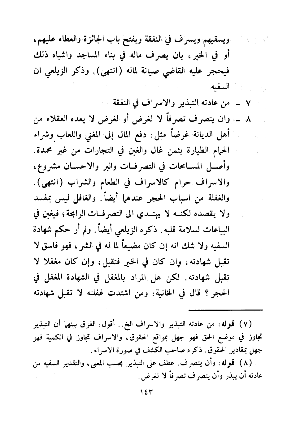 (8) قَوْلُهُ: وَأَنْ يَتَصَرَّفَ. عَطْفٌ عَلَى التَّبْذِيرِ بِحَسَبِ الْمَعْنَى، وَالتَّقْدِيرُ السَّفِيهُ مَنْ عَادَتُهُ أَنْ يُبَذِّرَ وَأَنْ يَتَصَرَّفَ تَصَرُّفًا لَا لِغَرَضٍ.