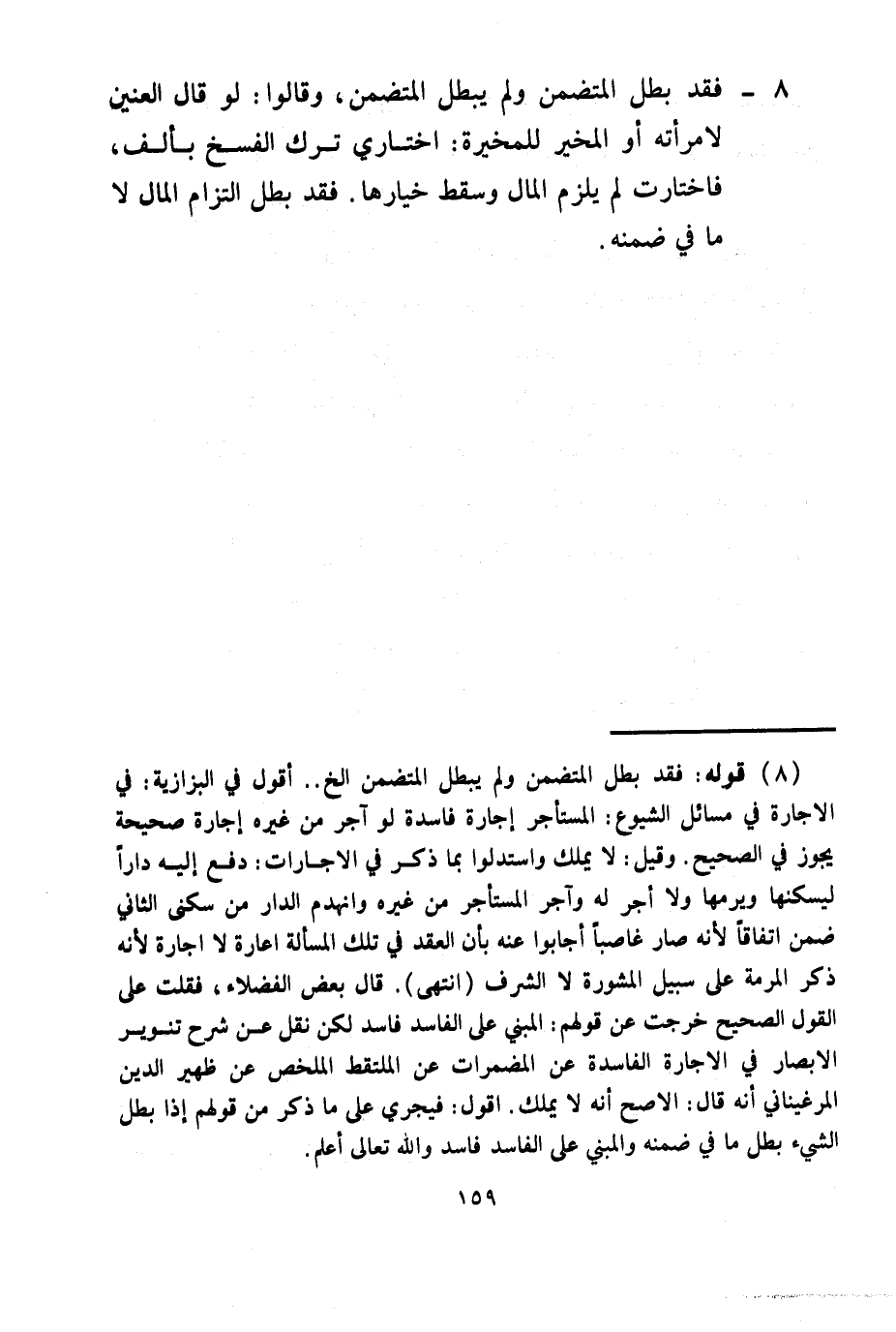 8 - فَقَدْ بَطَلَ الْمُتَضَمِّنُ وَلَمْ يَبْطُلْ الْمُتَضَمَّنُ، وَقَالُوا: لَوْ قَالَ الْعِنِّينُ لِامْرَأَتِهِ أَوْ الْمُخَيِّرُ لِلْمُخَيَّرَةِ: اخْتَارِي تَرْكَ الْفَسْخِ بِأَلْفٍ، فَاخْتَارَتْ لَمْ يَلْزَمْ الْمَالُ وَسَقَطَ خِيَارُهَا. فَقَدْ بَطَلَ الْتِزَامُ الْمَالِ لَا مَا فِي ضِمْنِهِ