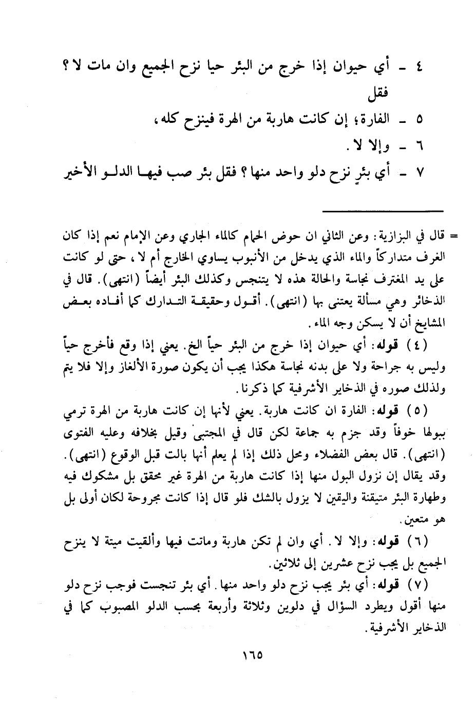7 - أَيُّ بِئْرٍ نُزِحَ دَلْوٌ وَاحِدٌ مِنْهَا؟ فَقُلْ بِئْرٌ صُبَّ فِيهَا الدَّلْوُ الْأَخِيرِ