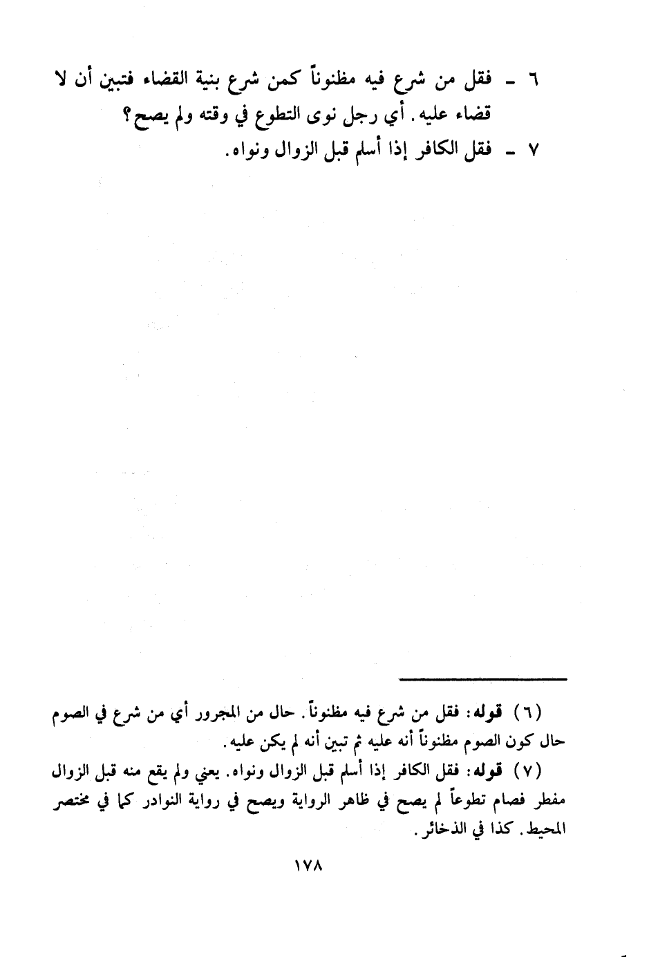 6 - فَقُلْ مَنْ شَرَعَ فِيهِ مَظْنُونًا كَمَنْ شَرَعَ بِنِيَّةِ الْقَضَاءِ فَتَبَيَّنَ أَنْ لَا قَضَاءَ عَلَيْهِ
