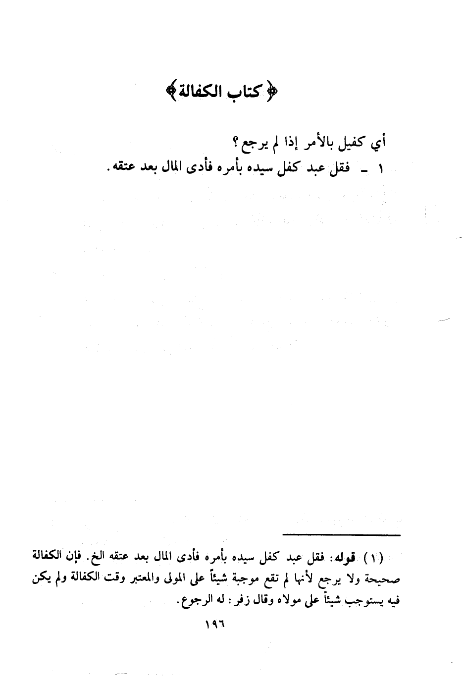 1 - فَقُلْ عَبْدٌ كَفَلَ سَيِّدَهُ بِأَمْرِهِ فَأَدَّى الْمَالَ بَعْدَ عِتْقِهِ