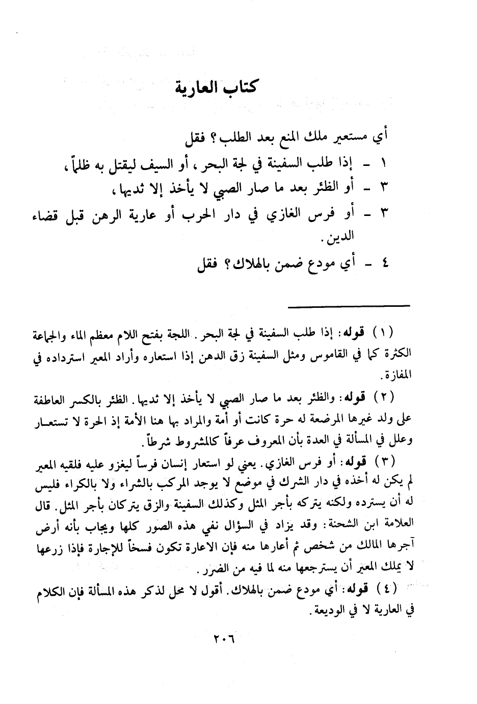 كِتَابُ الْعَارِيَّةِ أَيْ مُسْتَعِيرٌ مَلَكَ الْمَنْعَ بَعْدَ الطَّلَبِ؟ فَقُلْ