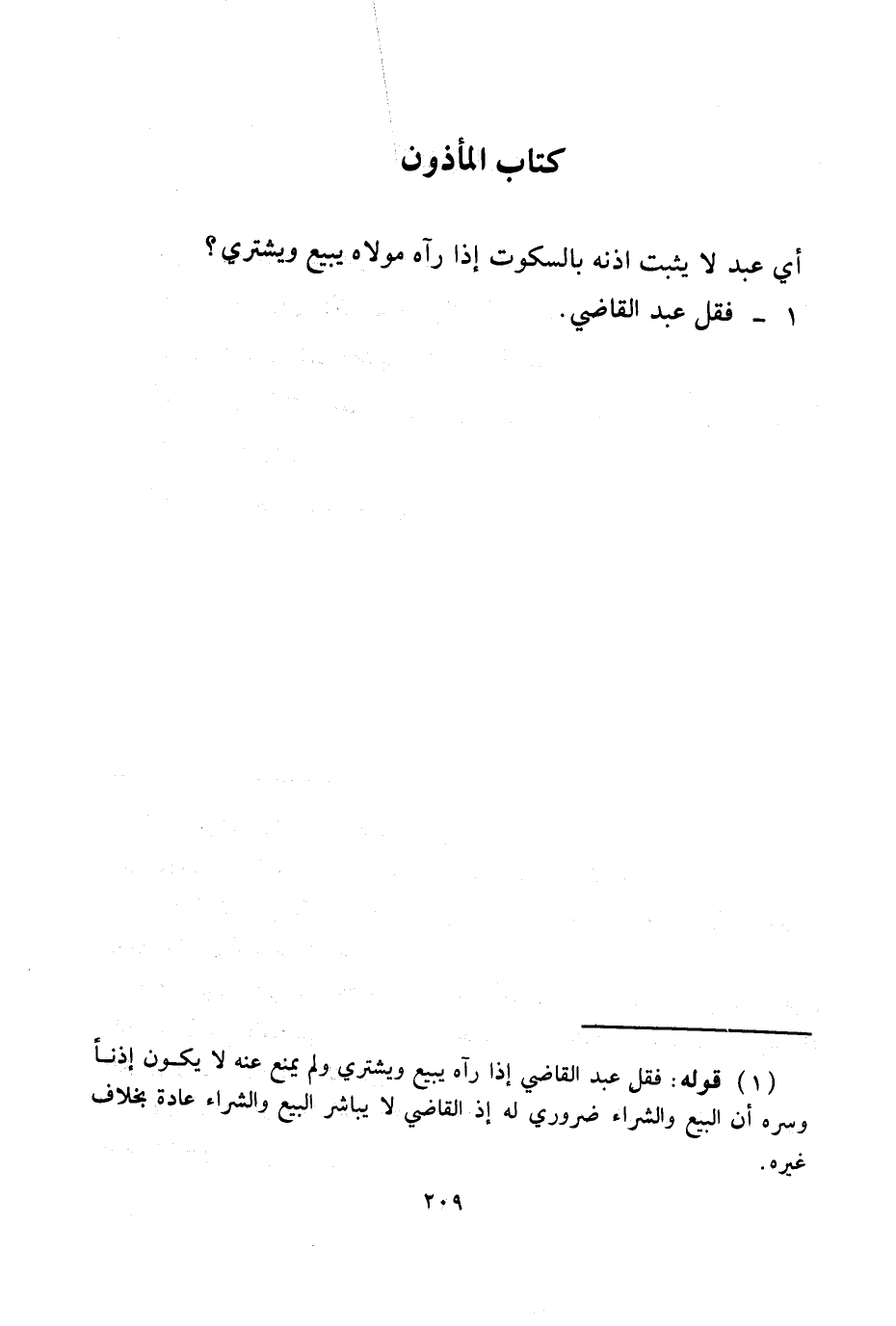 كِتَابُ الْمَأْذُونِ أَيُّ عَبْدٍ لَا يَثْبُتُ إذْنُهُ بِالسُّكُوتِ إذَا رَآهُ مَوْلَاهُ يَبِيعُ وَيَشْتَرِي؟