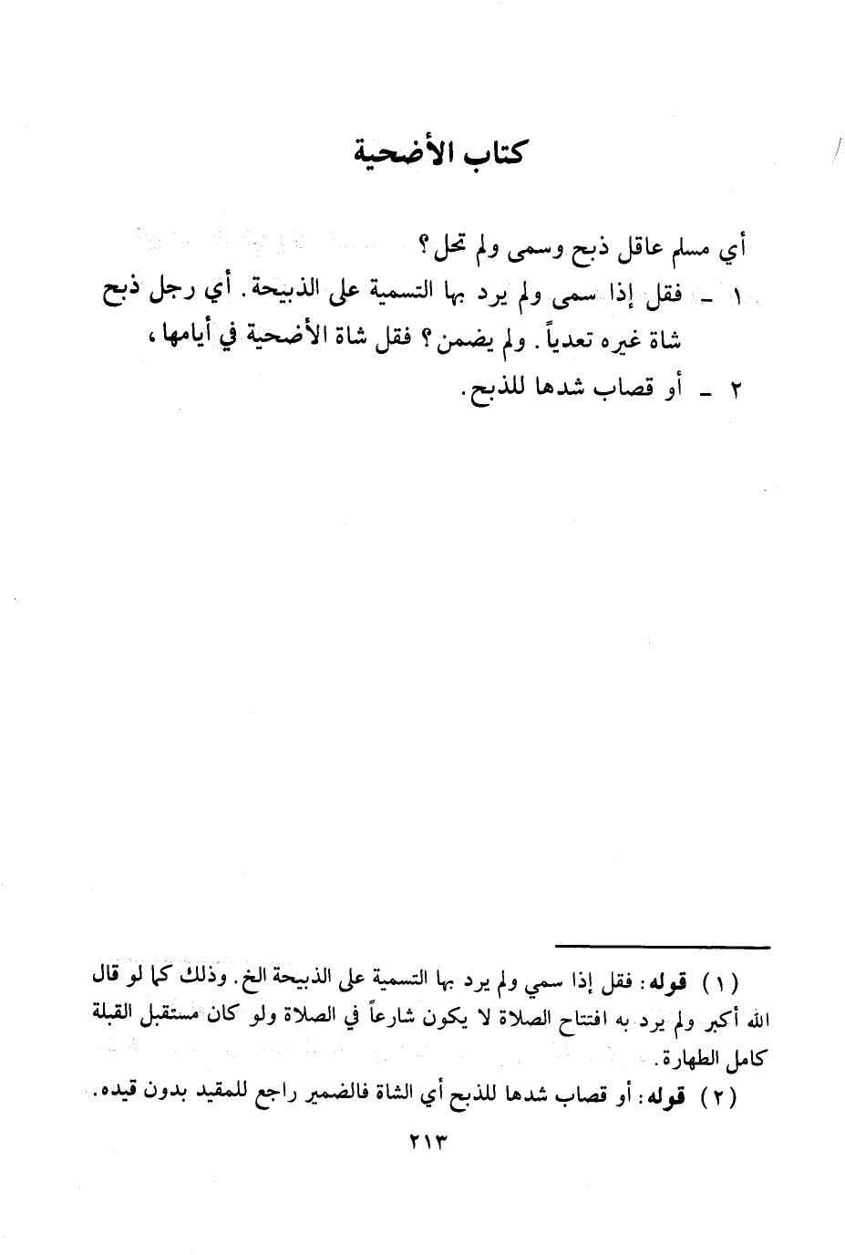 كِتَابُ الْأُضْحِيَّةِ أَيُّ مُسْلِمٍ عَاقِلٍ ذَبَحَ وَسَمَّى وَلَمْ تَحِلَّ؟