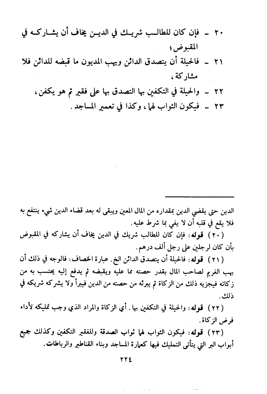 21 - فَالْحِيلَةُ أَنْ يَتَصَدَّقَ الدَّائِنُ وَيَهَبَ الْمَدْيُونَ مَا قَبَضَهُ لِلدَّائِنِ فَلَا مُشَارَكَةَ،