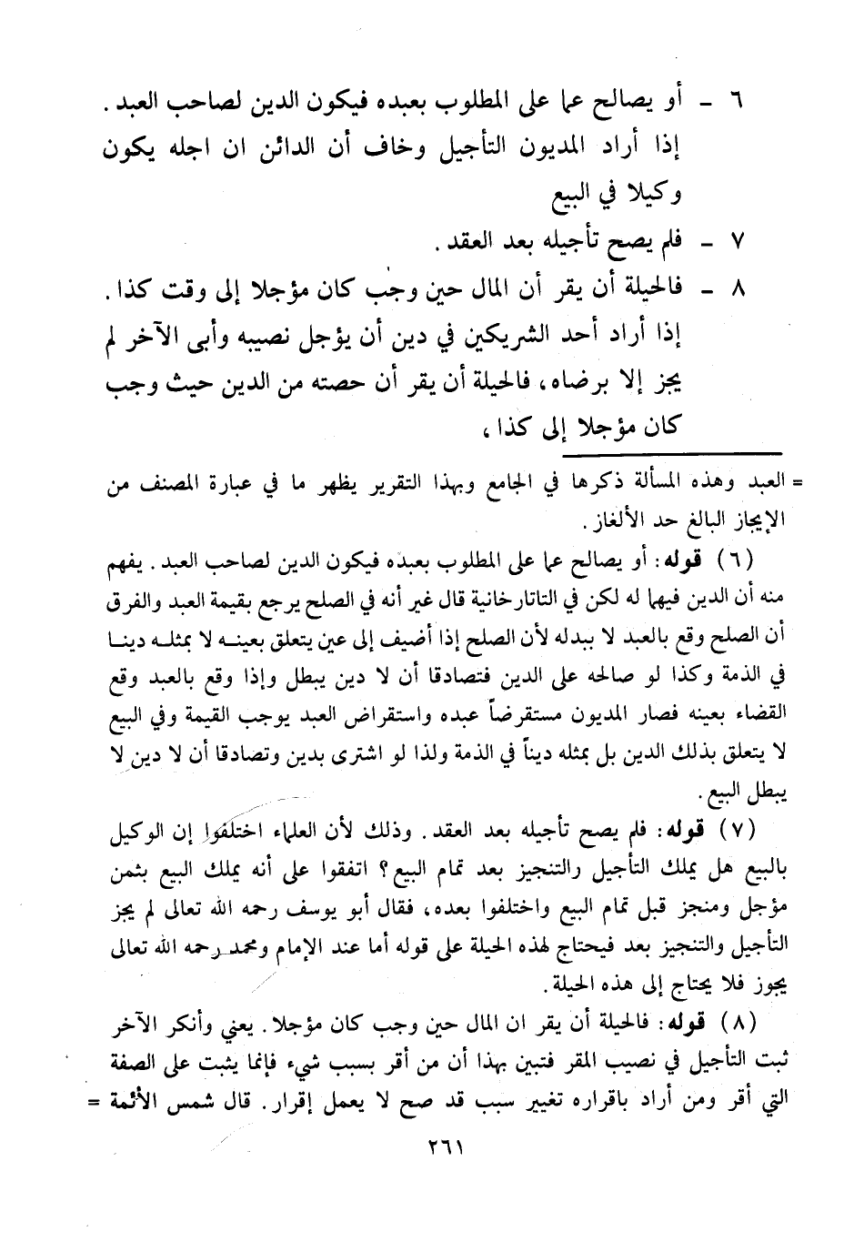 (7) قَوْلُهُ: فَلَمْ يَصِحَّ تَأْجِيلُهُ بَعْدَ الْعَقْدِ. وَذَلِكَ لِأَنَّ الْعُلَمَاءَ اخْتَلَفُوا أَنَّ الْوَكِيلَ بِالْبَيْعِ هَلْ يَمْلِكُ التَّأْجِيلَ وَالتَّنْجِيزَ بَعْدَ تَمَامِ الْبَيْعِ؟ اتَّفَقُوا عَلَى أَنَّهُ يَمْلِكُ الْبَيْعَ بِثَمَنٍ مُؤَجَّلٍ وَمُنَجَّزٍ قَبْلَ تَمَامِ الْبَيْعِ وَاخْتَلَفُوا بَعْدَهُ، فَقَالَ أَبُو يُوسُفَ - رَحِمَهُ اللَّهُ تَعَالَى - لَمْ يَجُزْ التَّأْجِيلُ وَالتَّنْجِيزُ بَعْدُ فَيَحْتَاجُ لِهَذِهِ الْحِيلَةِ عَلَى قَوْلِهِ أَمَّا عِنْدَ الْإِمَامِ وَمُحَمَّدٍ - رَحِمَهُ اللَّهُ تَعَالَى - يَجُوزُ فَلَا يُحْتَاجُ إلَى هَذِهِ الْحِيلَةِ.