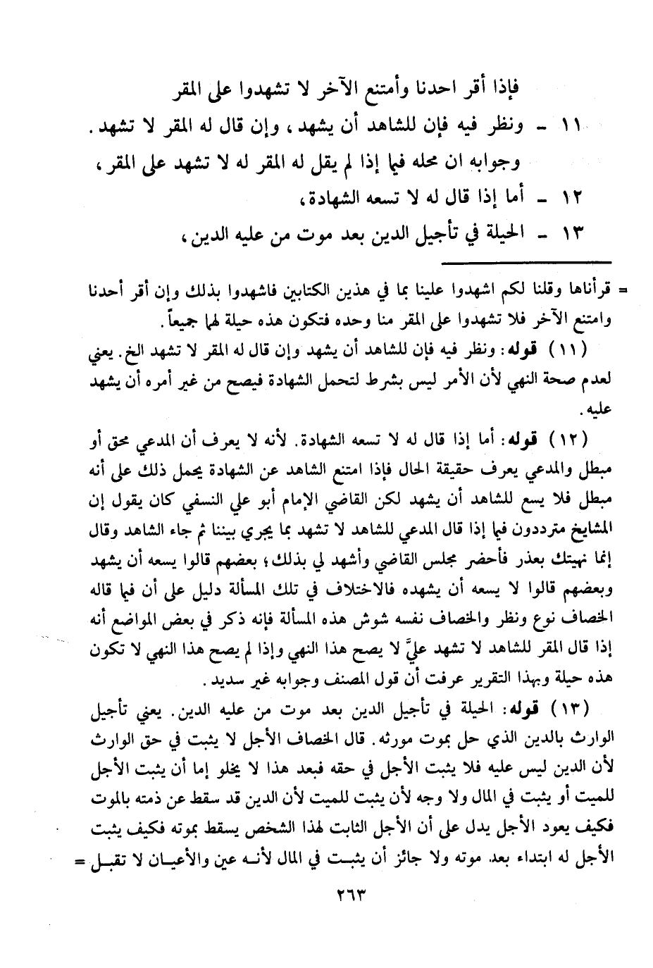 11 - وَنُظِرَ فِيهِ فَإِنَّ لِلشَّاهِدِ أَنْ يَشْهَدَ، وَإِنْ قَالَ لَهُ الْمُقِرُّ لَا تَشْهَدْ. وَجَوَابُهُ أَنَّ مَحِلَّهُ فِيمَا إذَا لَمْ يَقُلْ لَهُ الْمُقَرُّ لَهُ لَا تَشْهَدْ عَلَى الْمُقِرِّ،