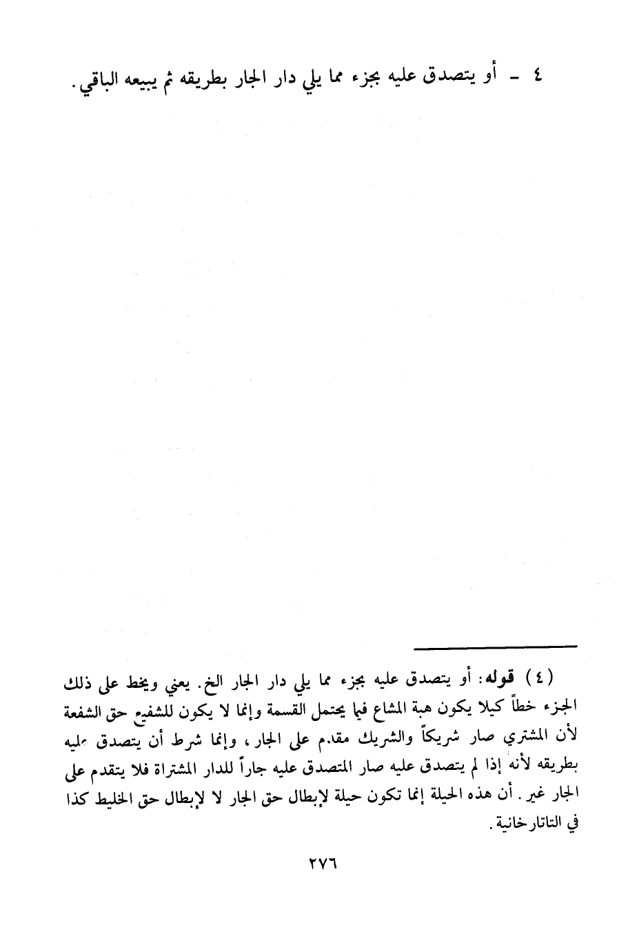 4 - أَوْ يَتَصَدَّقَ عَلَيْهِ بِجُزْءٍ مِمَّا يَلِي دَارَ الْجَارِ بِطَرِيقِهِ ثُمَّ يَبِيعَهُ الْبَاقِي