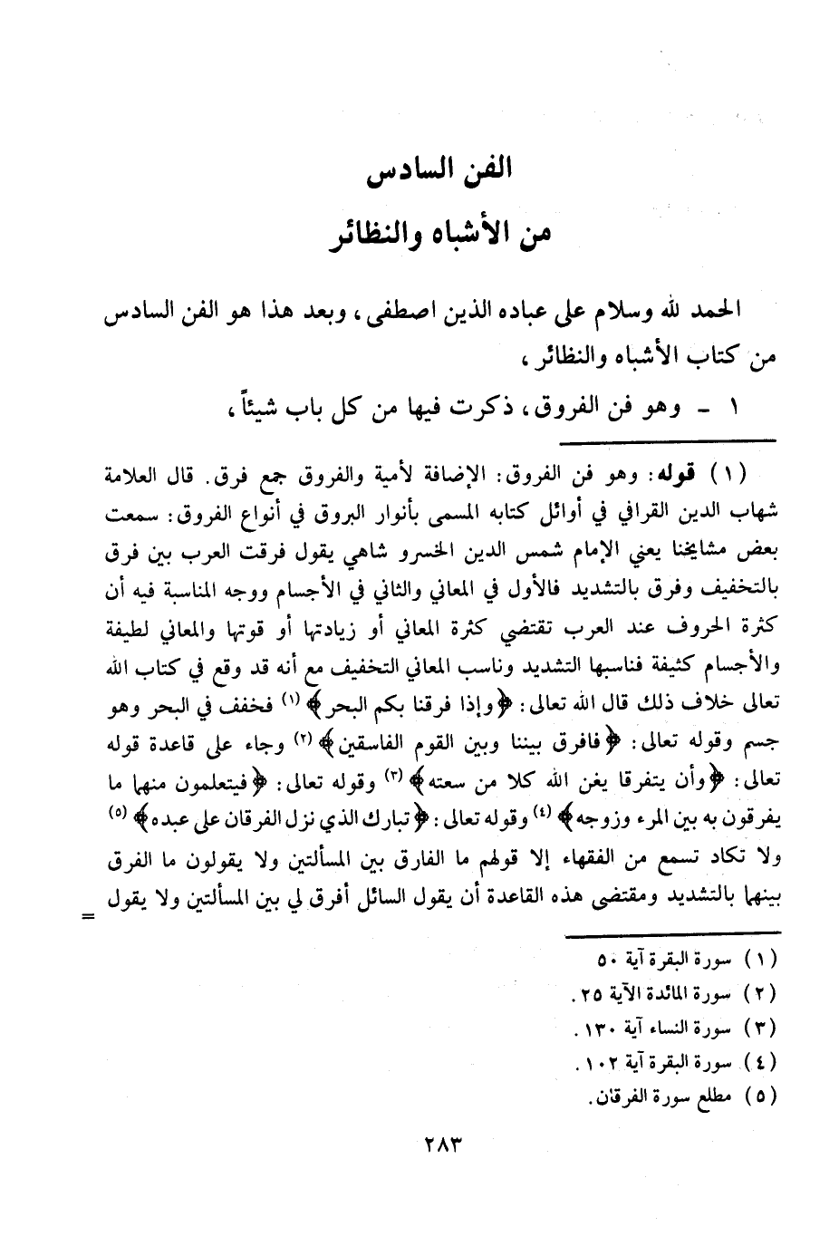 1 - وَهُوَ فَنُّ الْفُرُوقِ، ذَكَرْت فِيهَا مِنْ كُلِّ بَابٍ شَيْئًا