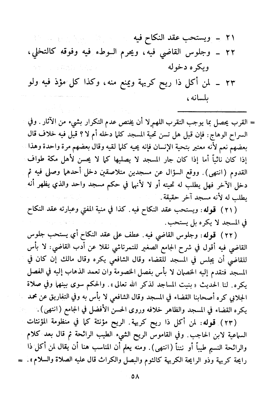وَيُكْرَهُ دُخُولُهُ 23 - لِمَنْ أَكَلَ ذَا رِيحٍ كَرِيهَةٍ وَيُمْنَعُ مِنْهُ وَكَذَا كُلُّ مُؤْذٍ فِيهِ وَلَوْ بِلِسَانِهِ