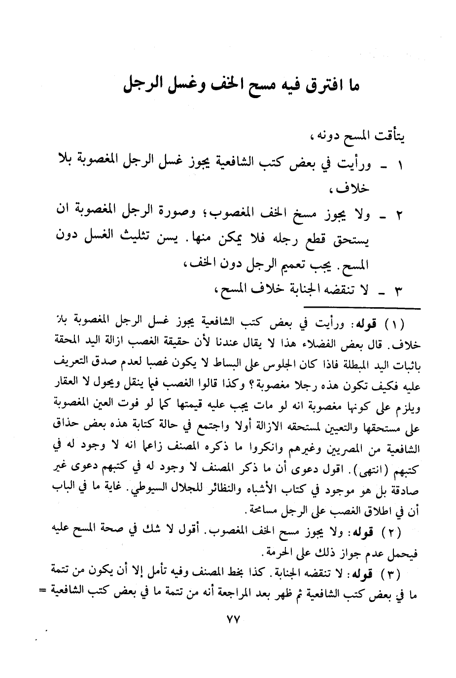 1 - وَرَأَيْت فِي بَعْضِ كُتُبِ الشَّافِعِيَّةِ يَجُوزُ غَسْلُ الرِّجْلِ الْمَغْصُوبَةِ بِلَا خِلَافٍ.