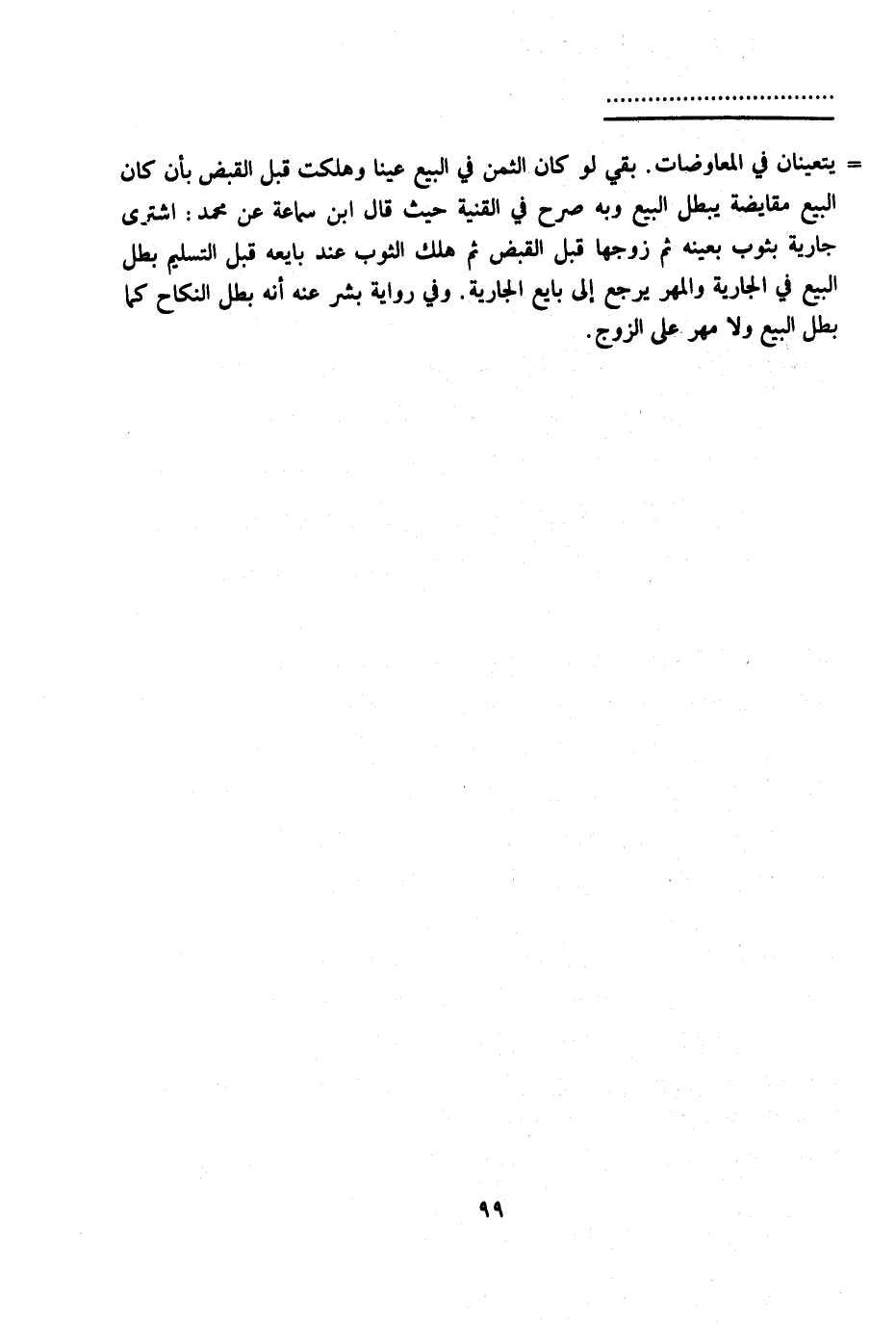 ـــــــــــــــــــــــــــــQيَتَعَيَّنَانِ فِي الْمُعَاوَضَاتِ. بَقِيَ لَوْ كَانَ الثَّمَنُ فِي الْبَيْعِ عَيْنًا وَهَلَكَتْ قَبْلَ الْقَبْضِ بِأَنْ كَانَ الْبَيْعُ مُقَايَضَةً يَبْطُلُ الْبَيْعُ وَبِهِ صَرَّحَ فِي الْقُنْيَةِ حَيْثُ قَالَ ابْنُ سِمَاعَةَ عَنْ مُحَمَّدٍ: اشْتَرَى جَارِيَةً بِثَوْبٍ بِعَيْنِهِ ثُمَّ زَوَّجَهَا قَبْلَ الْقَبْضِ ثُمَّ هَلَكَ الثَّوْبُ عِنْدَ بَائِعِهِ قَبْلَ التَّسْلِيمِ بَطَلَ الْبَيْعُ فِي الْجَارِيَةِ وَالْمَهْرُ يَرْجِعُ إلَى بَائِعِ الْجَارِيَةِ. وَفِي رِوَايَةِ بِشْرٍ عَنْهُ أَنَّهُ بَطَلَ النِّكَاحُ كَمَا بَطَلَ الْبَيْعُ وَلَا مَهْرَ عَلَى الزَّوْجِ