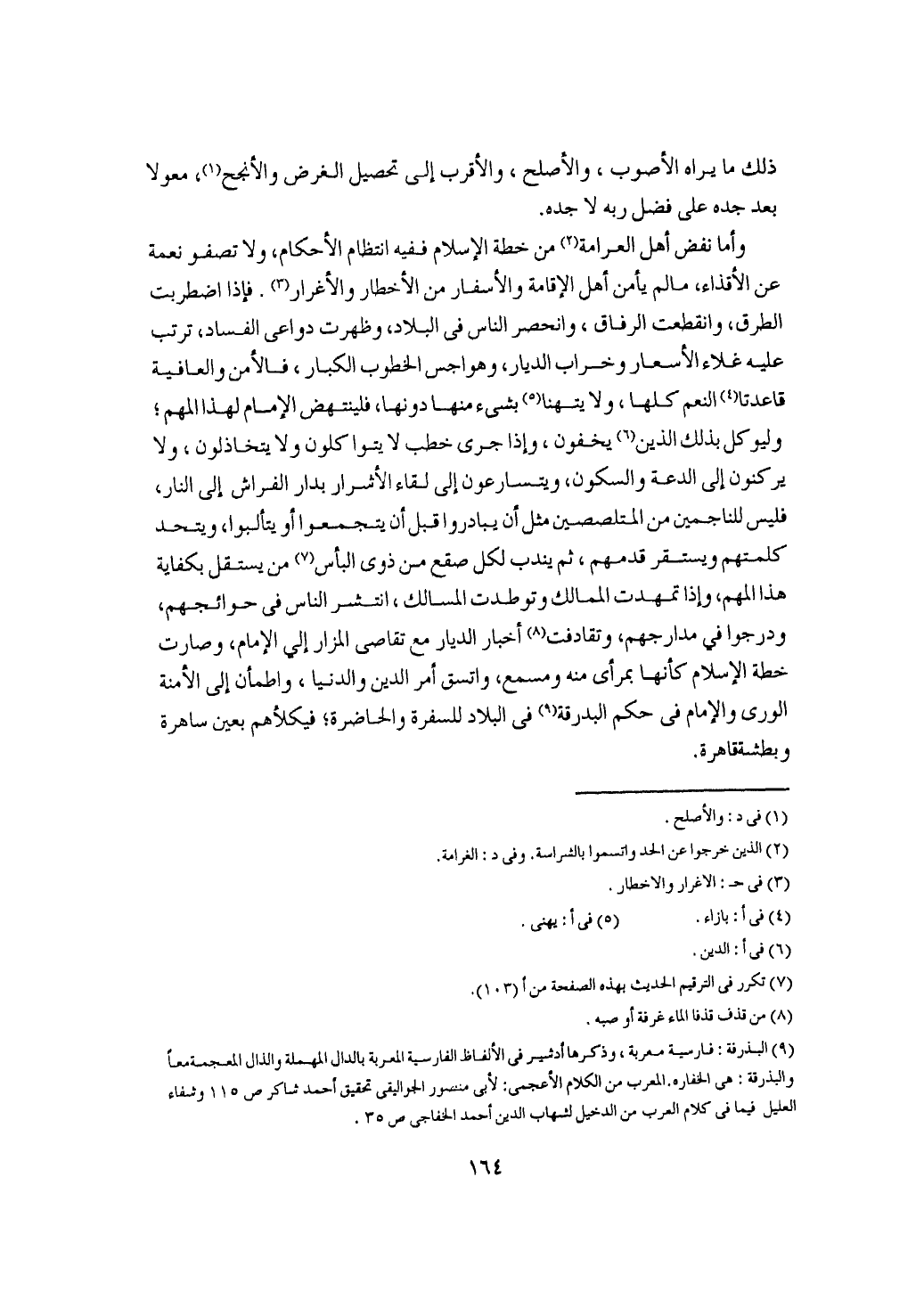 وذهب بعض الجهلة عن غرة وغباوة أن ما جرى في صدر الإسلام من التخفيفات كان سببها أنهم كانوا على قرب عهد بصفوة الإسلام وكان يكفي في ردعهم التنبيه واليسير والمقدار القريب من التعزير وأما الآن فقد قست القلوب وبعدت العهود ووهت العقود وصار متشبث عامة الخلق الرغبات والرهبات فلو وقع الاقتصار على ما كان من العقوبات لما استمرت السياسات