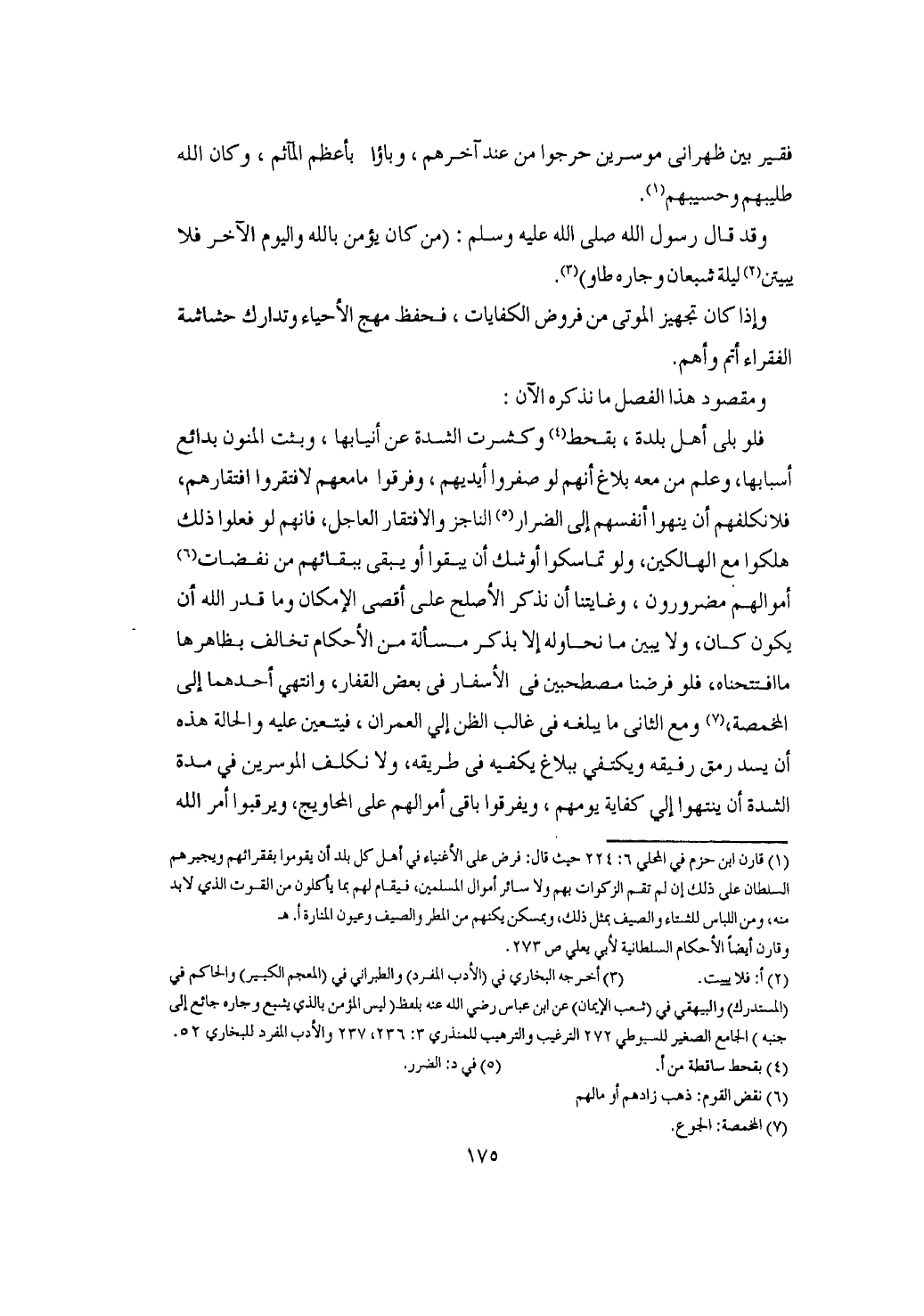 الأحكام تخالف بظاهرها ما افتتحناه فلو فرضنا مصطحبين في الأسفار في بعض القفار وانتهى أحدهما إلى المخمصة ومع الثاني ما يبلغه في غالب الظن إلى العمران فيتعين عليه والحالة هذه أن يسد رمق رفيقه ويكتفي ببلاغ يكفيه في طريقه ولا نكلف الموسرين في مدة الشدة أن ينتهوا إلى كفاية يومهم ويفرقوا باقي أموالهم على المحاويج ويرقبوا أمر الله في غدهم ولا يسوغ لهم أن يغفلوا عن أمور المساكين أصلا ويتركوهم يموتون هزلا والأمر في الرفيقين مفروض فيه إذا قرب وصولهما إلى البلدان والعمران ولا يعود فيهما شذاذ وامتداد