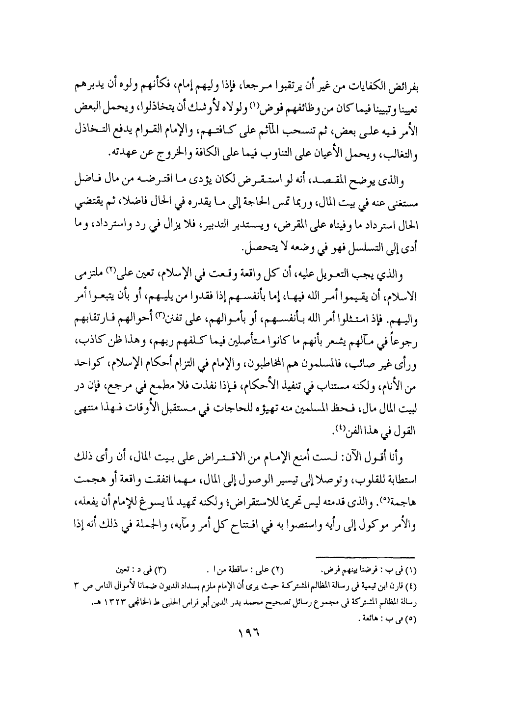 فإن وقع نظره في النكفاف عن الأموال التزم مصير الإسلام إلى اسوأ المصائر والاحوال وان استرسل في اطلاق الايدي في الأموال من غير اقتصاد انتصب إلى احداث مطالبات كلية لا اصل لها في القضايا الشرعية