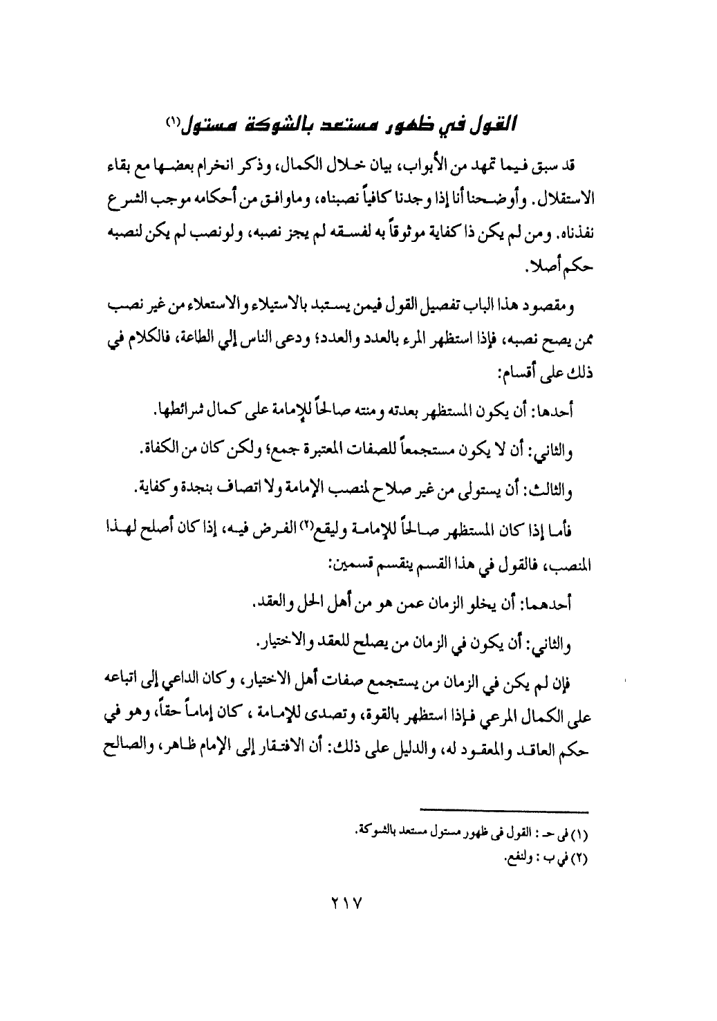 أن شرط التصدي للحكم بين العباد استجماع صفات الاجتهاد ولم يشترط أبو حنيفة رضي الله عنه ذلك وذكر الفقهاء هذه المسألة من فنون مسالك الظنون والذي أراه القطع باشتراط الاجتهاد وما وضح فيه منهج السداد يتقرر بتقديم اصل عظيم الغناء في احكام الاجتهاد فأقول وعلى طول الله وتيسيره الاعتماد وبفضله الاعتضاد على المقلد ضرب من النظر في تعيين مقلده وليس له أن يقلد من شاء من المفتين مع تباين المذاهب وتباعد الاراء والمطالب