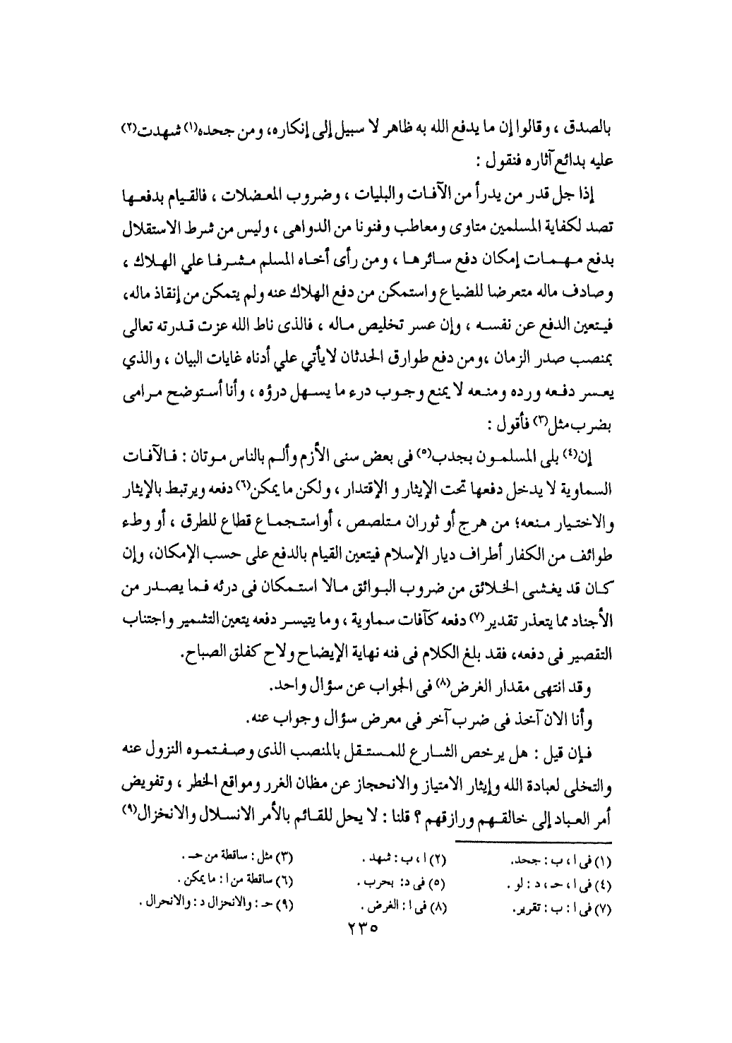 نعم تعصي الخلائق في الصورة التي نحن فيها بمخالفة من توحد لاستحقاق التقدم وسبب تعصيتهم تقاعدهم عن نصب امام يندفع به النزاع والدفاع والخصومات الشاجرة والفتن الثائرة وتتسق به الأمور وتنتظم به المهمات والغزوات والثغور ويجوز أن يصير صائر إلى انه امام وان لم يطع وينفذ ما يمضيه من احكامه على مومافقة وضع الشرع وليس اضراب الخلق عن طاعته في هذه الصورة كما سبق تصويره وتقريره فيما تقدم من ابواب الكتاب فإن ذاك مفروض فيه إذا سقطت طاعة الأمام ووجدنا غيره وضعو الناس وميلهم إلى غيره فالذي يليق باستصلاح الراعي والرعية نصب من هو شوف النفوس والذي نحن فيه مصور فيه إذا تفرد في الزمان من يصلح للامامة فإذا كان كذلك تعينت طاعة مثل هذا على الناس كافة ولا معنى لكون الأمام اماما إلا أن طاعته واجبة وهذا الذي فيه الكلام بهذه الصفة فهو امام يجب اتباعه فتنفذ اذا احكامه