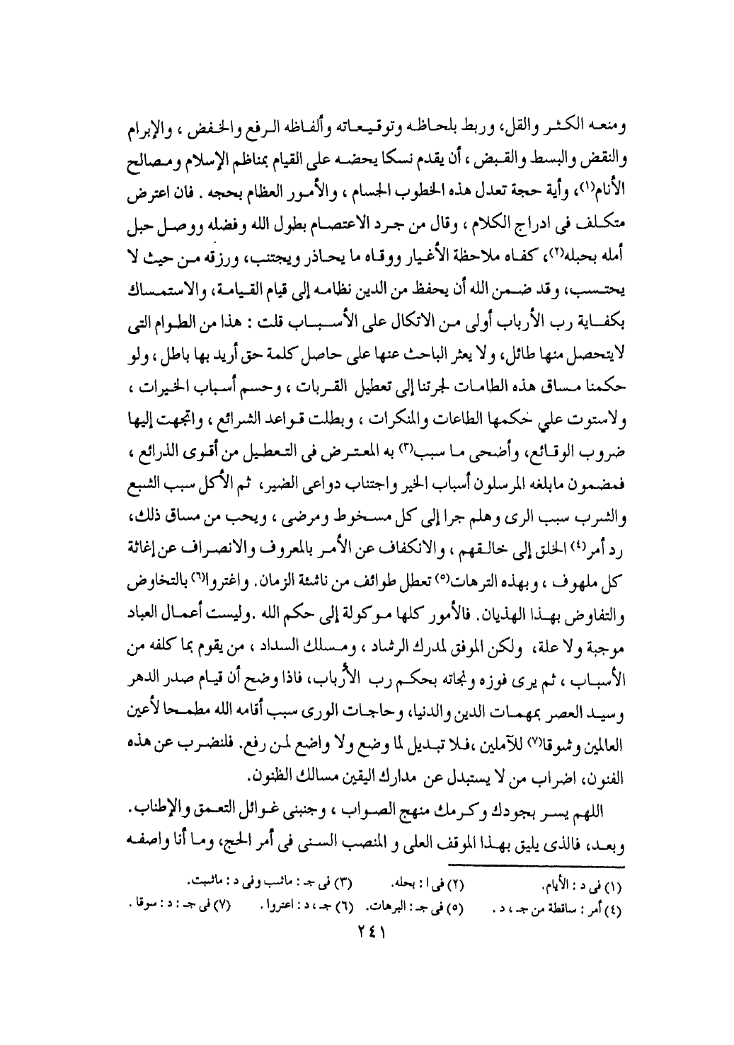 فإذا كان يجوز الدفع عن الفلس والنفس باللسان والخمس ثم بالسلاح والجراح من غير مبالاة بزهوق الارواح مع التعرض للتردد بين الاخفاق والانجاح فلو انتفض الدهر عن امام ذي استقلال وقيام بمهمات الانام ولا خبال في عالم الله يبر على النظام والرعاع والطعام وهمج العوام ولو جرت فترة في بعض الاعوام وجرى ما نحاذره من خروج الأمور عن مسلك الانتظام للقي أهل الإسلام احوالا واختلالا لا يحيط بوصفه غايات الاطناب في الكلام ولأكل بعض الناس بعضا وارتجت الممالك واضطربت المسالك طولا عرضا ثم إذا خلت الديار عن الجنود المعقودة والانصار استجرأ لاكفار وتمادى الفساد والانتشار وعم الشر والضر وظهر الخبال في البحر والبر فكم من دماء لو افضى الأمر إلى ذلك لسفكت وحرمات لهتكت وكم من حدود تضيع وتهمل وكم ذريعة في تعطيل الشريعة تعمل وكم من مناظم للدين تدرس وكم معالج تمحق وتطمس