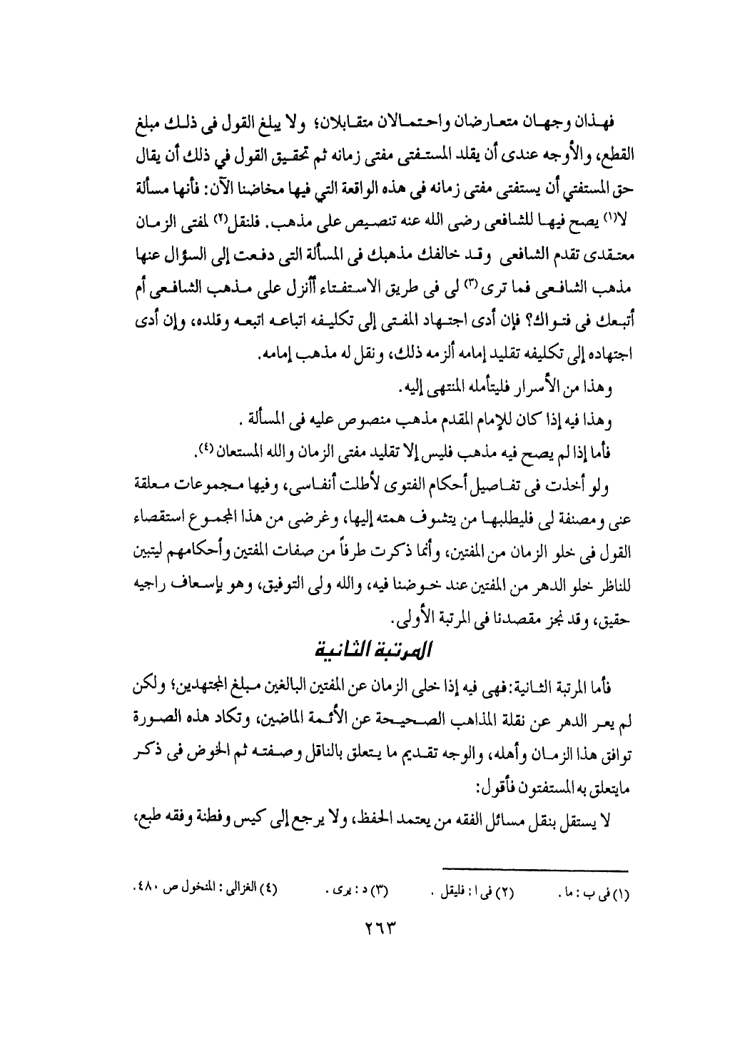 قد تحقق أن صدر الورى وكهف الدين والدنيا احتمل اعباء الملة واثقالها وتقلد اشغالها وجردت اليه الخليقة آمالها جررت اليه الاماني اذيالها وربطت ملوك الأرض بعالي رأيه سلمها وقتالها ووفاقها وجدالها وواصلت البريه في اللياذ به غدوها وآصالها ولو آثر الايداع اياما معدودة لبلدت الاستقامة احوالها وزلزلت الأرض زلزالها وابدت غوائل الدهر أهوالها وبلغ الأمر مبلغا يعصر فيه التدارك ولا يرجى معه التماسك فإذا كان يجب على العبد الابق إذا لابس القتال ووقف في صف الابطال أن يصابر ويستقر ويثابر لانه لو انصرف لافضى انصرافه وانعطافه إلى انفلال الجند وانحلال العقد ثم إذا كثر الجمع في صف الإسلام فقد يقل اثر واحد ينسل وينفل وربما لا يستبين له وقع ولا يظهر لوقوفه في نظر العقل نفع ولا دفع إذا كانت بنود الإسلام تخفق على مائة ألف مثلا أو يزيدون ولكن حسم الشرع سبيل الانصراف والانكفاف فان تسويغ الانفلال للواحد يؤدي إلى تسويغه لغيره وهذا يتداعى إلى خروج الأمر عن الضبط إذ النفوس تتشوف إلى الفرار من مواطن الردى وتتنكب اسباب التوى