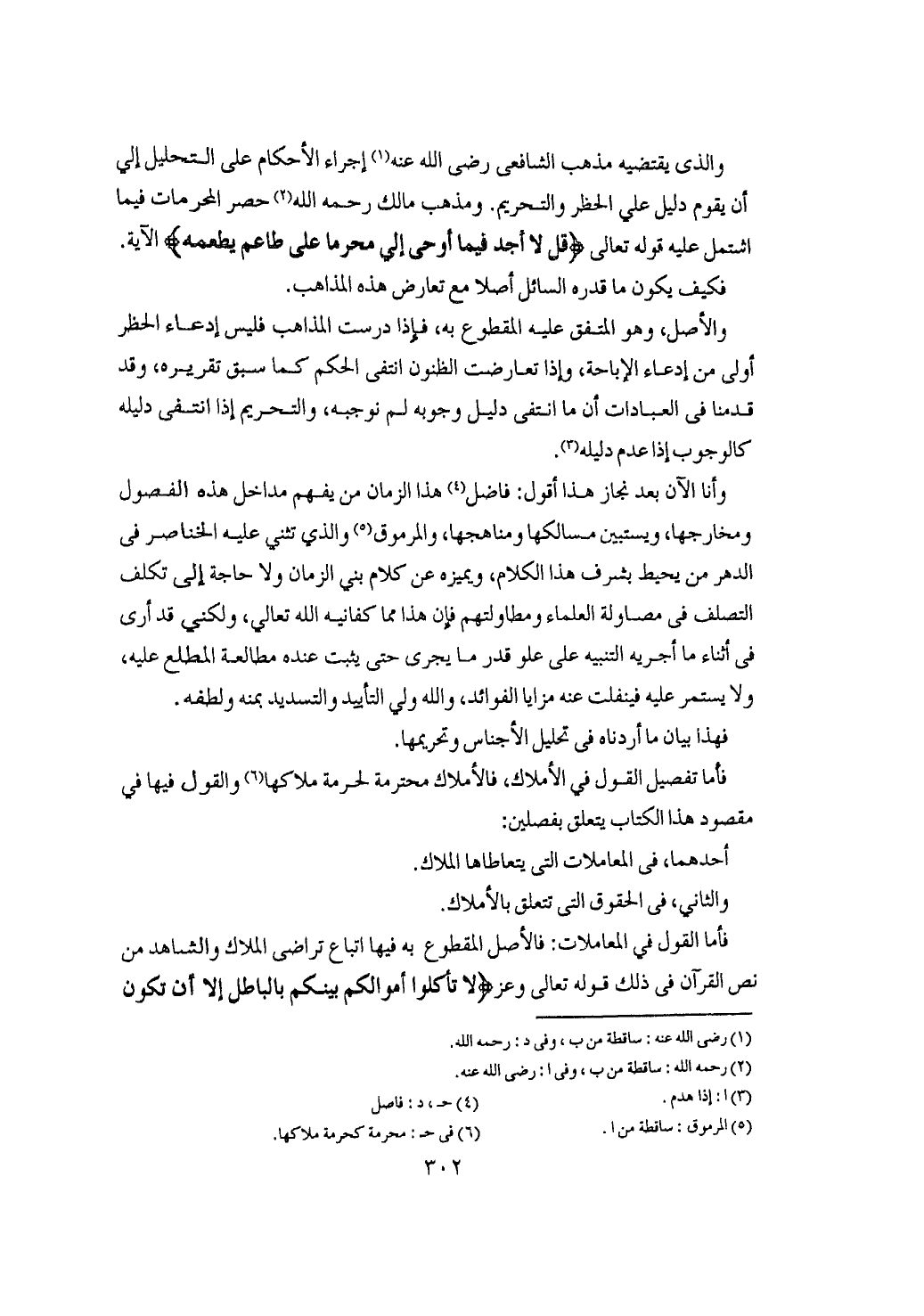 والذي أراه في ذلك القطع باتباع الأمام المقدم والاضراب عن مذاهب المتأخرين عنه قدرا وعصرا
